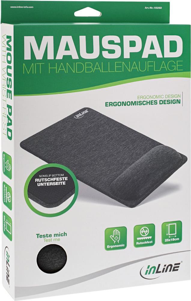 InLine - Mauspad mit Handgelenkpolsterkissen - Schwarz, Grau gesprenkelt (55262)