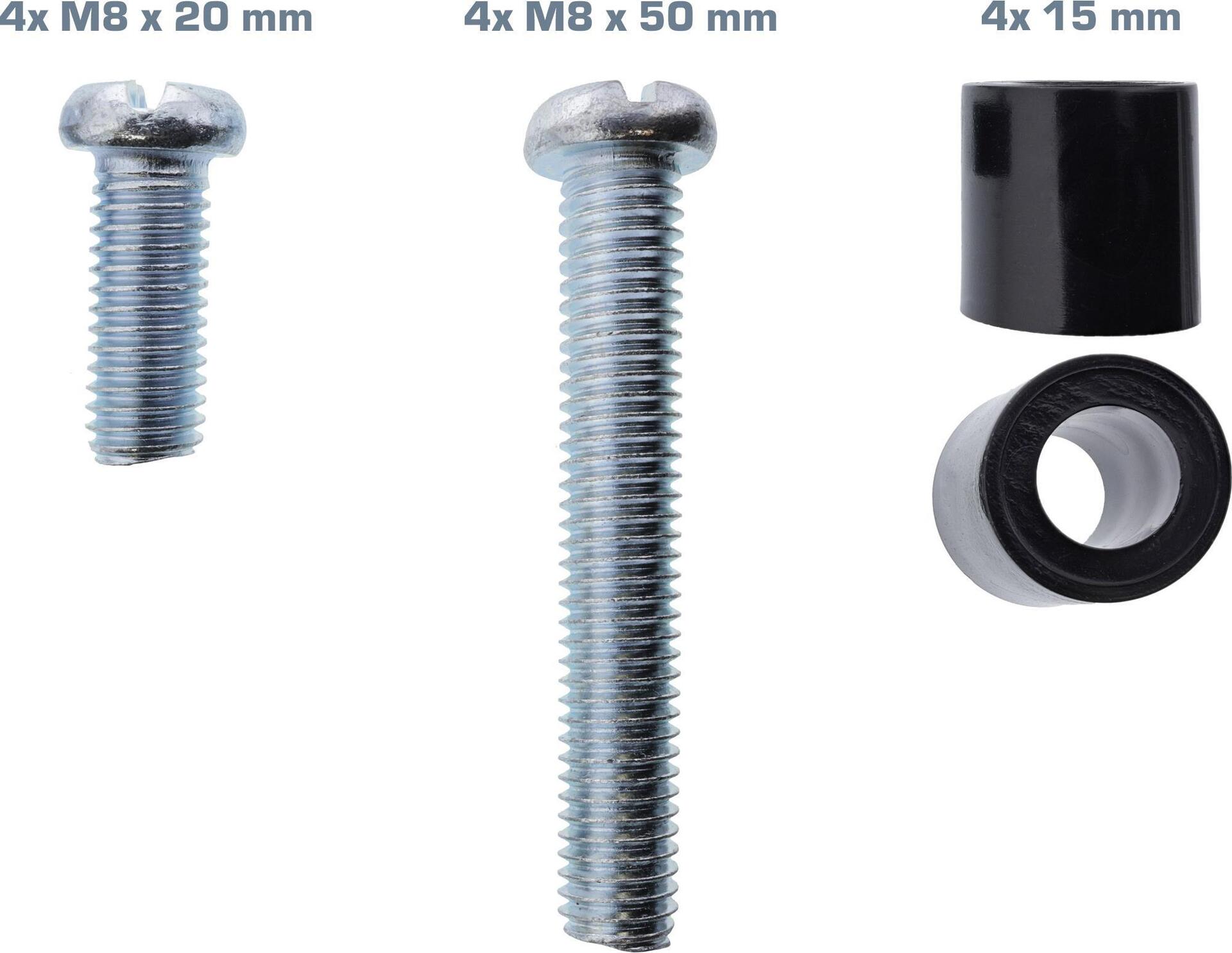 InLine® 8er Schraubenset 4x M8x20mm, 4x M8x50mm und 4 15mm Abstandhalter für Wandhalterung (23100Y)