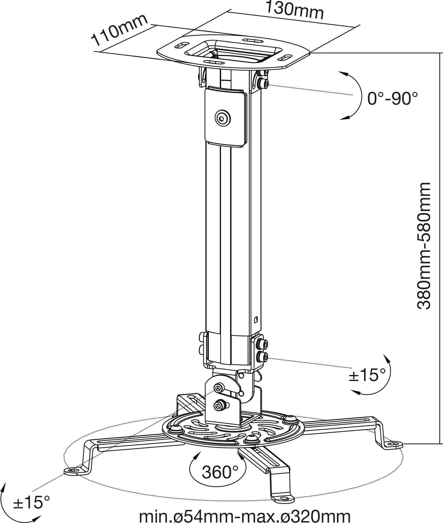• Für Beamer mit Lochabstand 54-320mm geeignet