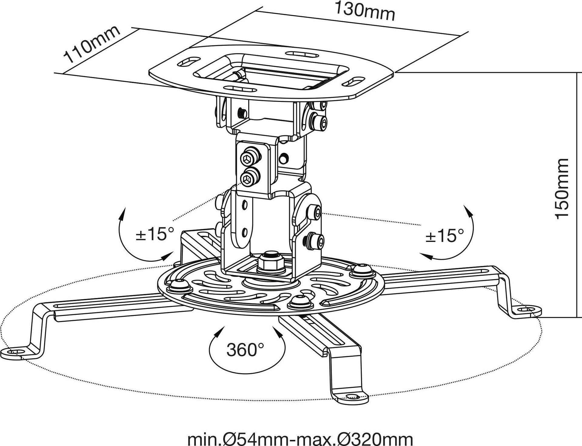 • Für Beamer mit Lochabstand 54-320mm geeignet