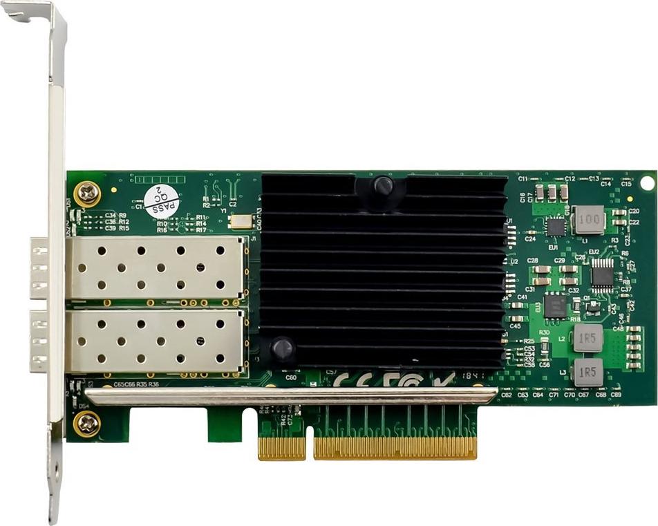 Die InLine® Dual 10-Gigabit Netzwerkkarte mit zwei SFP+ Ports bietet höchste Performance für Glasfaser-basierte Netzwerkverbindungen. Mit dem Intel JL82599EN Chipsatz ausgestattet, ermöglicht sie zuverlässige Datenübertragung mit bis zu 10Gb/s pro Port – ideal für Server, Rechenzentren und virtualisierte Infrastrukturen.Die Karte unterstützt gängige Standards wie 10GBASE-SR, -LR, -ER u.v.m. (IEEE 802.3ae) und bietet Funktionen wie VLAN-Tagging, Vollduplex-Flusskontrolle, Receive Side Scaling (RSS), Jumbo Frames bis 16KB sowie Unterstützung virtueller Maschinen (VM Queues). Die Unterbrechungsdrosselung verbessert zudem die CPU-Auslastung.Dank PCIe x8 Schnittstelle (Rev. 2.0) lässt sich die Karte flexibel integrieren. Sie wird mit einem Low-Profile Slotblech geliefert – ideal auch für kompakte Systeme.Technische Spezifikationen:• Chipsatz: Intel JL82599EN