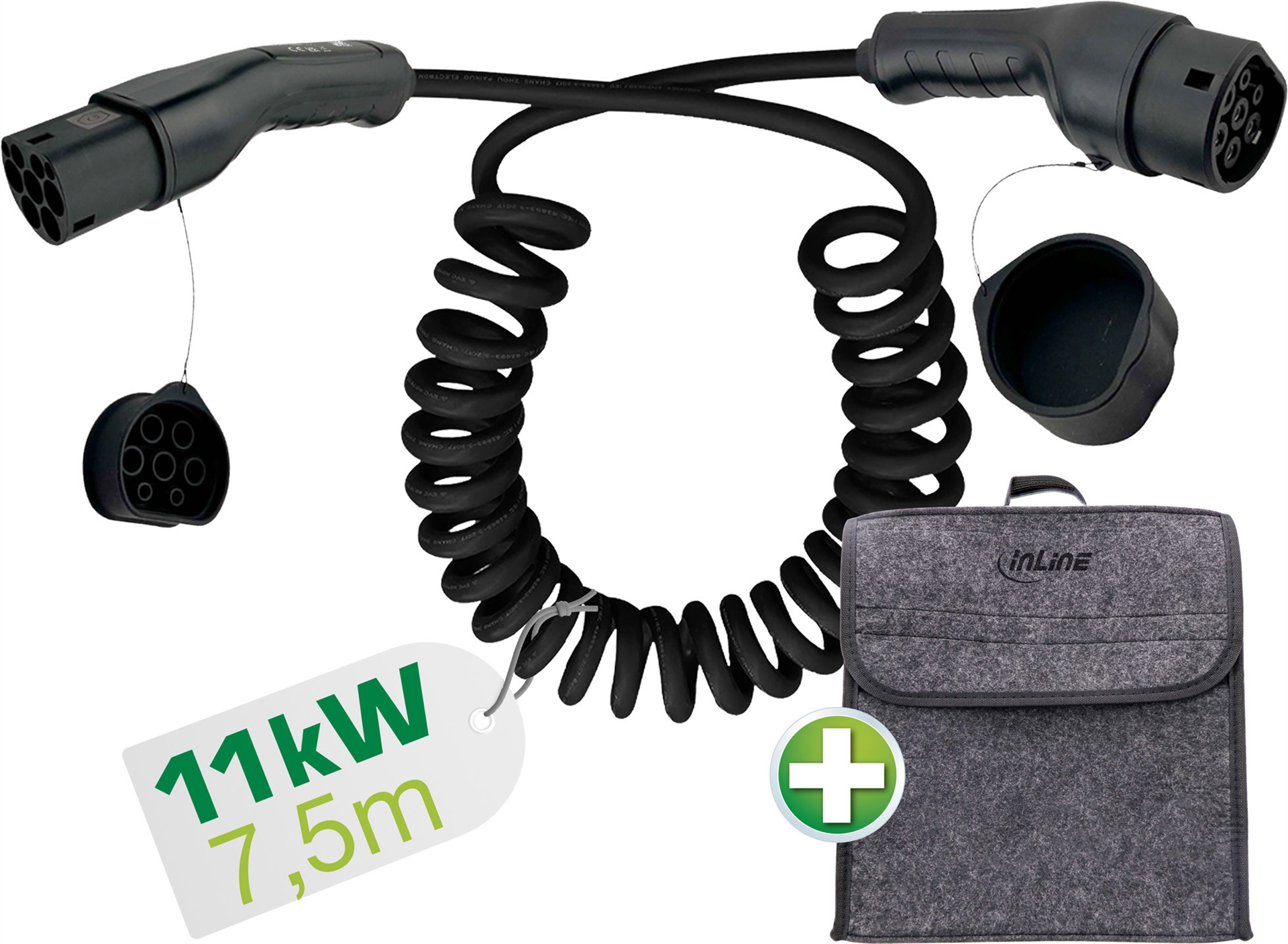 • InLine® EV Spiral-Autoladekabel 11kW Typ2, 3-phasig, 7,5m (16277S)