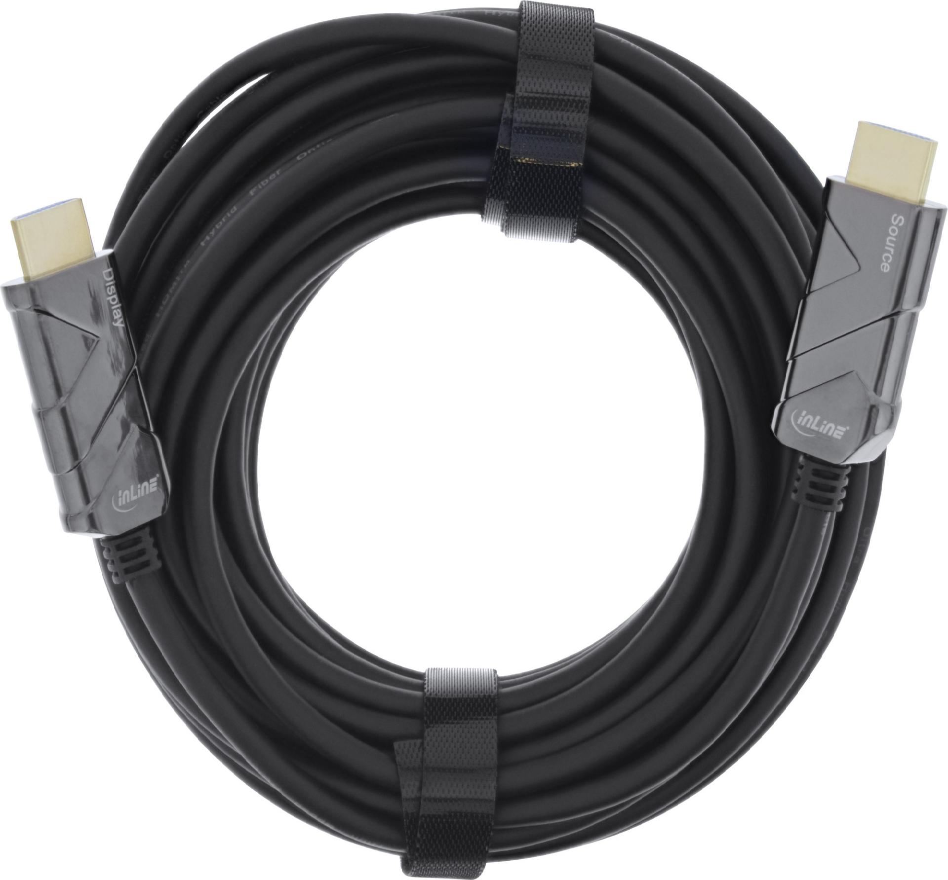 INLINE - Ultra High Speed HDMI-Kabel - HDMI (M) bis HDMI (M) - 15 m - Glasfaser - Schwarz - Active Optical Cable (AOC), Support von 4K 120 Hz, unterstützt 8K 60 Hz (7680 x 4320)