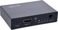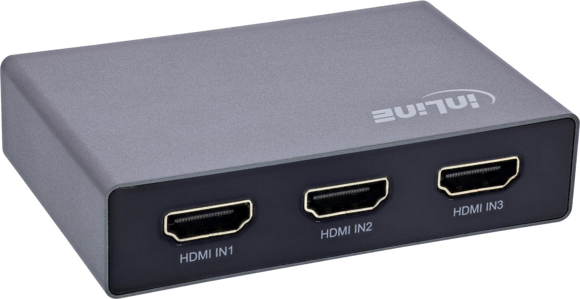 Der InLine 3-fach HDMI Switch ermöglicht eine effiziente Verwaltung mehrerer HDMI-Quellen in professionellen AV-Umgebungen. Mit drei HDMI-Eingängen und einem HDMI-Ausgang können Spielkonsolen, Blu-ray-Player oder Computer problemlos an einen Fernseher oder Monitor angeschlossen und bequem umgeschaltet werden.Dank HDMI 2.1-Unterstützung überträgt der Switch Auflösungen bis zu 8K @ 60 Hz und bietet eine hohe Bildwiederholrate bis zu 144 Hz bei 4K. Dies macht ihn ideal für anspruchsvolle visuelle Anwendungen, sei es im Heimkino, bei Digital-Signage-Lösungen oder professionellen Gaming-Setups.Neben gestochen scharfer Bildqualität überzeugt der Switch mit einer umfassenden Audio-Kompatibilität, die sowohl unkomprimierte Formate (LPCM 7.1) als auch Dolby TrueHD, DTS-HD und Dolby AC3 unterstützt. Die integrierte IR-Fernbedienung erlaubt eine bequeme Steuerung, während die kompakte Bauweise eine einfache Integration in bestehende Installationen ermöglicht.Technische Daten:• Auflösung: bis zu 8K @ 60 Hz (7680x4320 px), 4K @ 144 Hz (3840x2160 px), 480i/480p, 576i/576p, 720p, 1080i/1080p, 1440p, 2160p (4K), 4320p (8K)