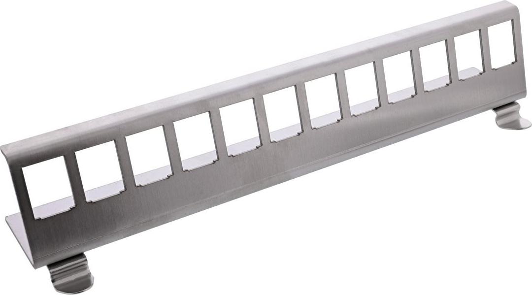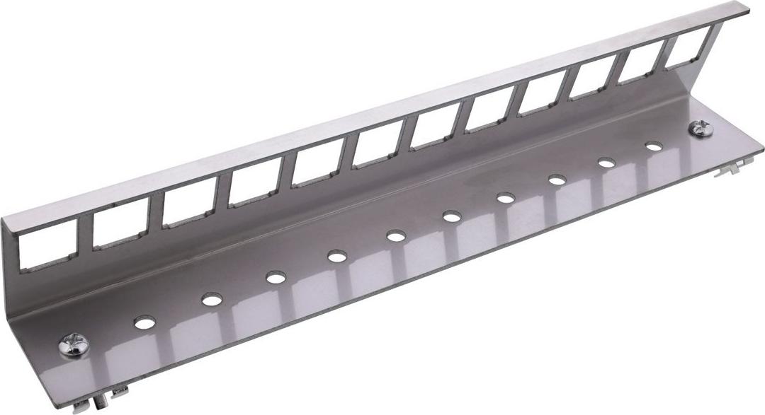 Diese Halterung kann an einer Hutschiene befestigt werden. Durch die standardisierten Abmessungen ist sie zur einfachen Snap-In Montage von einem Keystone Modul geeignet.• Passend für 12x Keystone Ports mit 19 x 14,8 mm Öffnung
