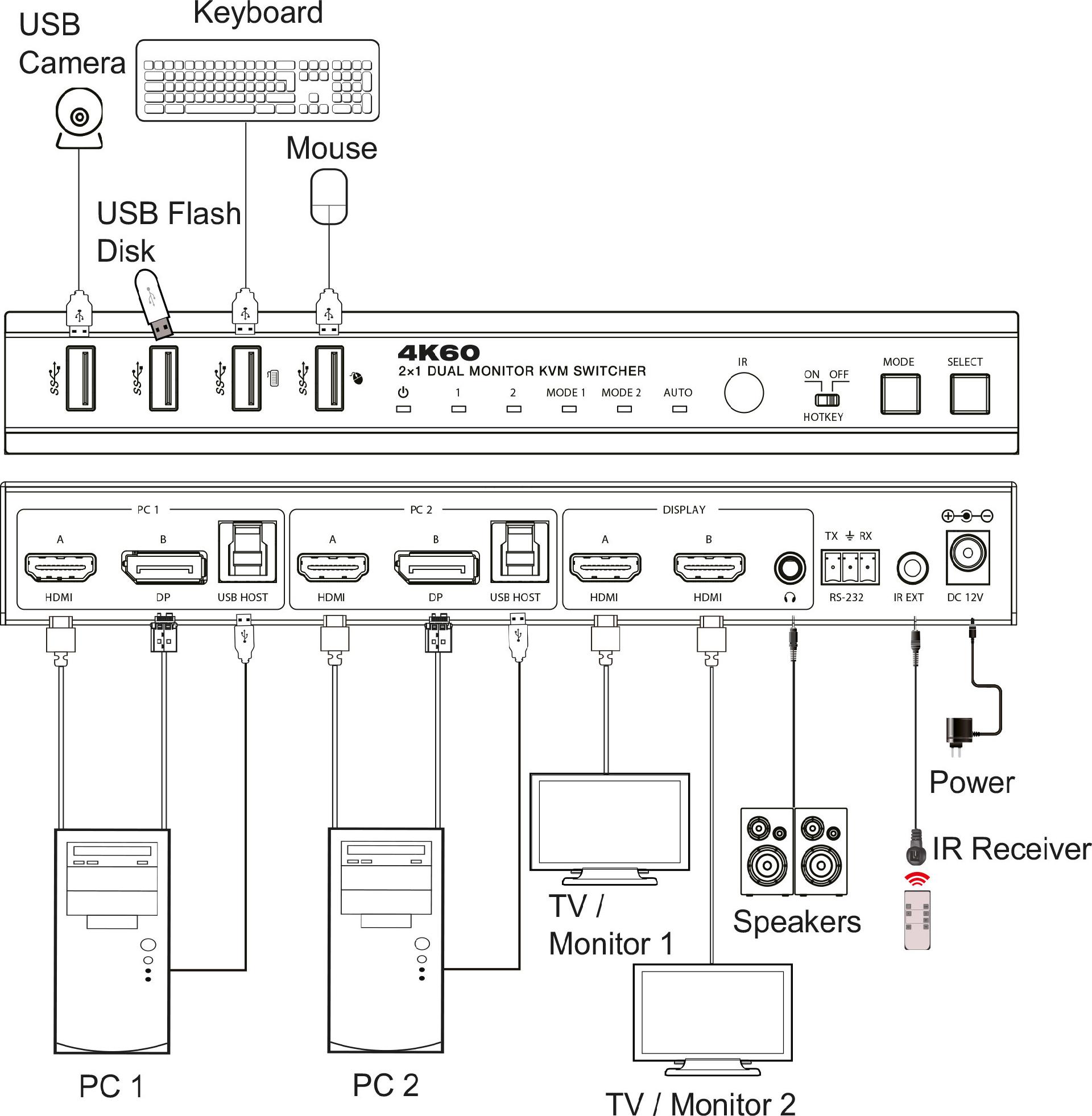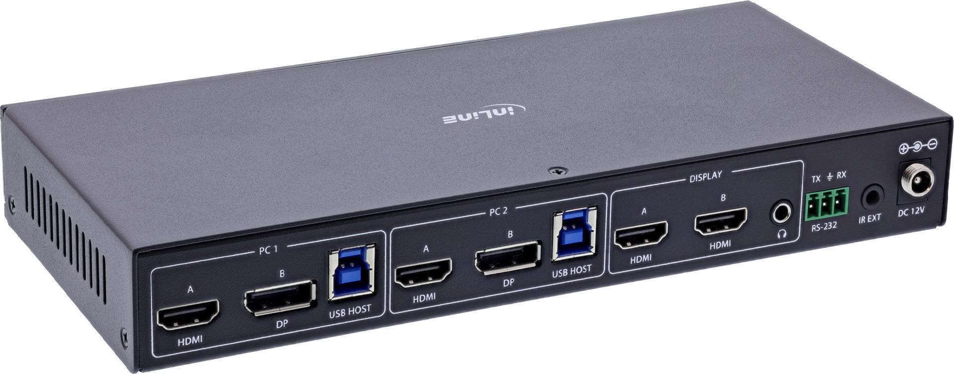 InLine KVM Switch - 2-fach - HDMI & DP - Dual Monitor - 4K60Hz - USB Hub - schwarz (57885G)