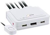 Dieses Gerät ist ein 2-Port DisplayPort USB-Kabel-KVM-Switch mit zwei integrierten USB-/ KVM- und Audio/Mikro-Kombikabelsätzen und einer QuickSwitch-Taste für Fernbedienung über Kabel zum schnellen Anschluss Ihrer Rechner. Sie können mit nur einer USB-Tastatur, Maus, Bildschirm und Lautsprechersatz mit Mikro auf mehrere Multimedia-Rechner zugreifen, diese steuern, hochfahren und neu starten. Zum schnellen Umschalten zwischen zwei Rechnern verwenden Sie die QuickSwitch-Taste oder die auf den Rechnern installierte Switching-Software! Auf Windows- und Mac-Plattformen stellt sie eine innovative, anwenderfreundliche KVM-Switching-Software bereit - eine kleine Windows/Mac-Clientanwendung zur Unterstützung von KVM-Schaltvorgängen wie der Auswahl von PCs und Programmierung von Hotkeysequenzen, Autoscanning, Programmierung der Autoscan-Verzögerungszeit, unabhängiges/simultanes Audio- & PC-Umschalten usw. Dieser DisplayPort USB-Kabel-KVM-Switch bietet USB 2.0-Schnittstellentechnologie für Plug&Play und Einstecken im laufenden Betrieb (Hot-plug). Neben einer Maus oder einer Tastatur können an die beiden USB 2.0-Ports auch andere schnelle USB-Geräte angeschlossen werden. Anwender profitieren von maximaler Flexibilität und Anwenderfreundlichkeit dank kompaktem Design in einem Gerät.• 2-fach KVM USB DisplayPort Umschalter mit Audio