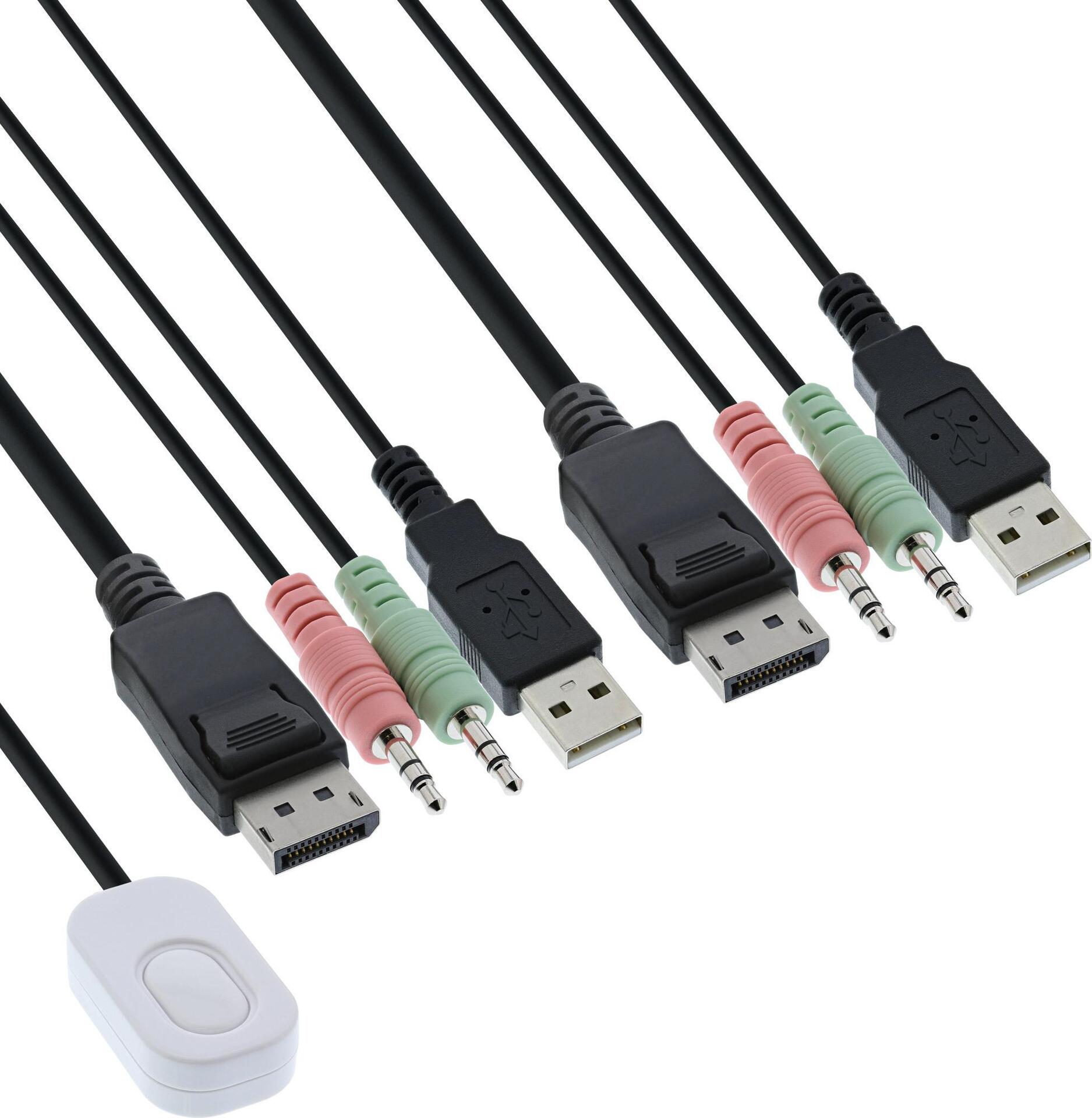 • Umschalter mit 1x DisplayPort Buchse, 2x USB 2.0 Buchse, 2x 3,5mm Audiobuchse