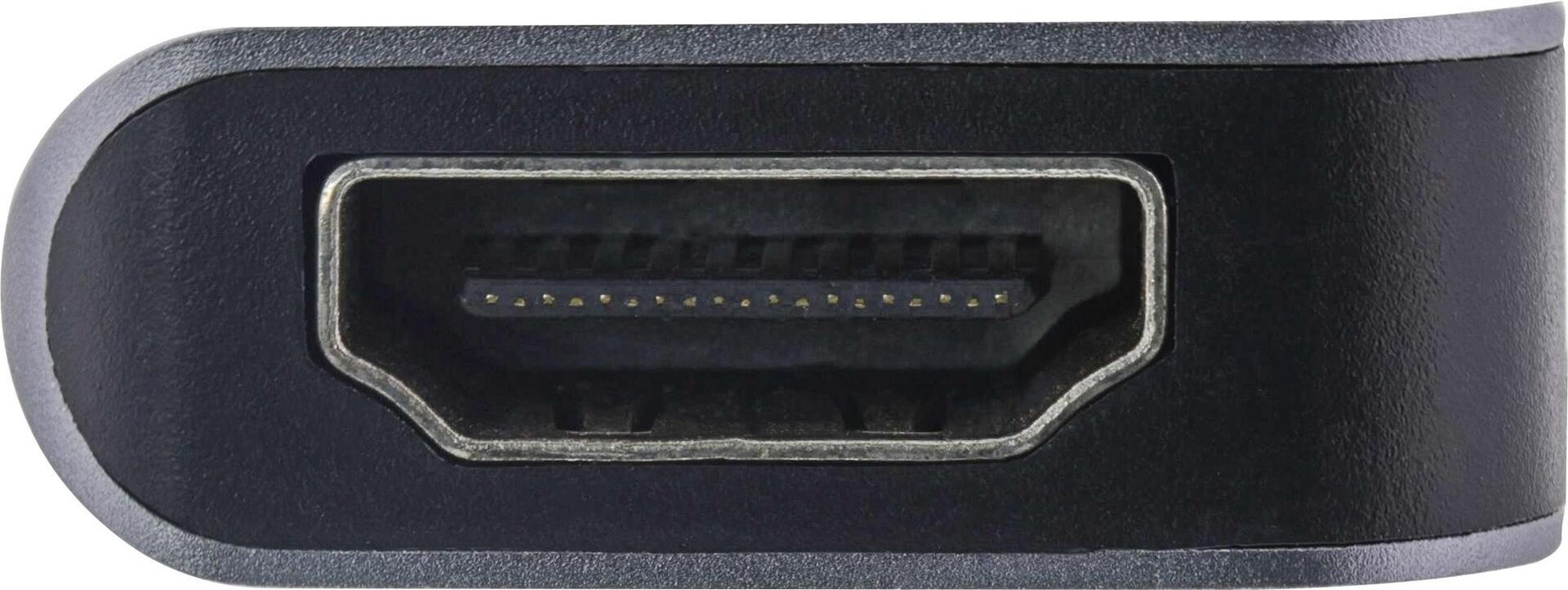 Multifunktions-Hub USB3.2 Gen.1 in kompaktem Design mit Typ-C Anschluss, zwei USB-A Buchsen, HDMI-Buchse und USB Typ-C Buchse mit Power Delivery bis 87W. Der Multifunktions-Hub ist ein idealer Reisebegleiter zu Ihrem mobilen Computer, denn er hält notwendinge Anschlüsse bereit, die vom Notebook/MacBook nicht bereitgestellt werden.• Anschlüsse: 1x HDMI Buchse, 2x USB 3.2 Gen.1 Typ-A Buchse, USB Typ-C PD Ladebuchse• USB Typ-C Stecker zum Anschlus an den Computer• USB Typ-C Buchse kompatibel mit PD 3.0, unterstützt externe Stromversorgung von max. 87W (kein Datentransfer)• HDMI unterstützt Auflösungen bis 4K/30Hz, FullHD 1080P/60Hz• USB Datentransferrate von bis zu 5Gb/s• Jeder Port unterstützt Hot Swap und Plug & Play• OTG-Funktion - kann mit kompatiblen Smartphones & Tablets genutzt werden• Unterstützt Windows, MacOS, Linux und Android
