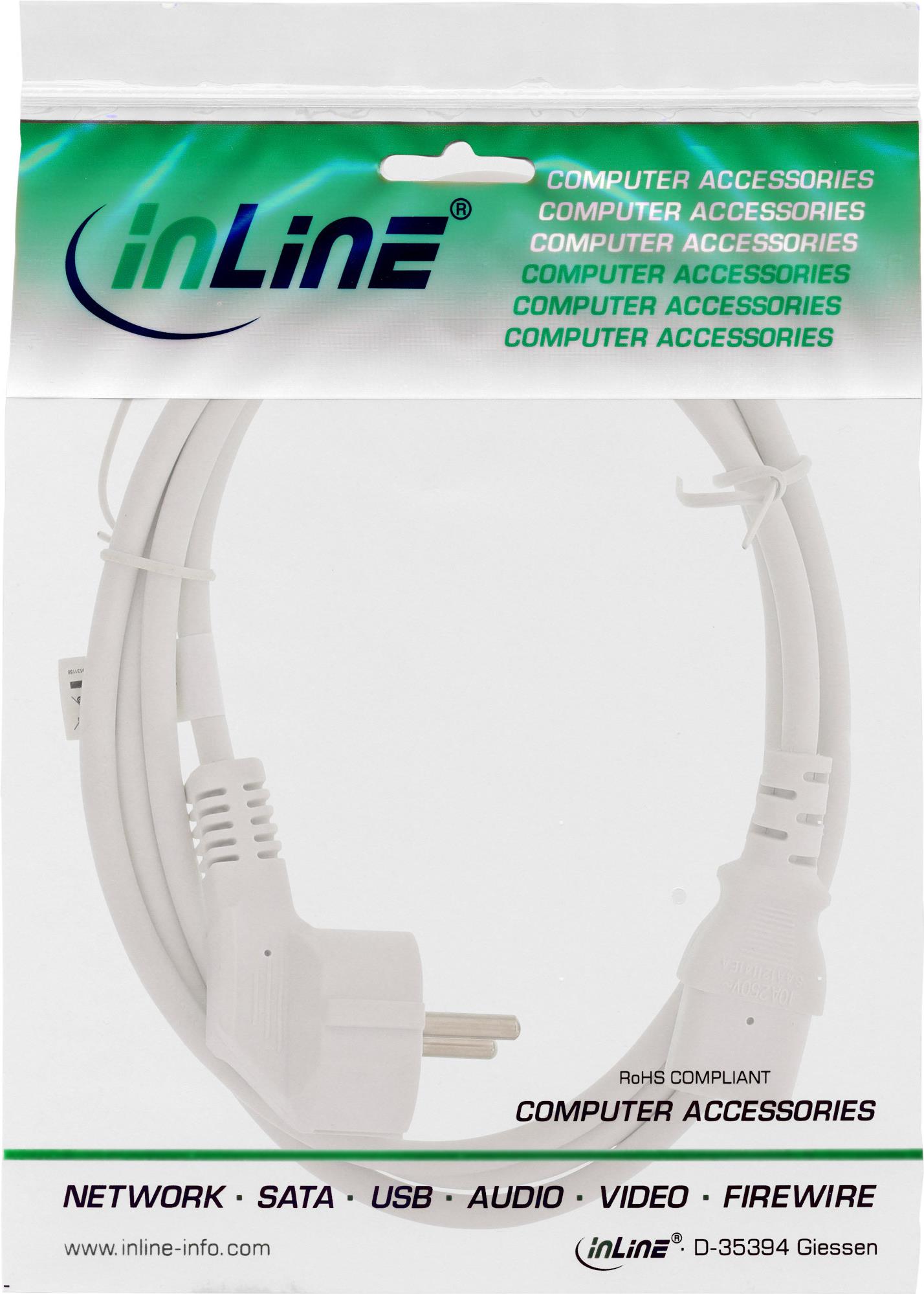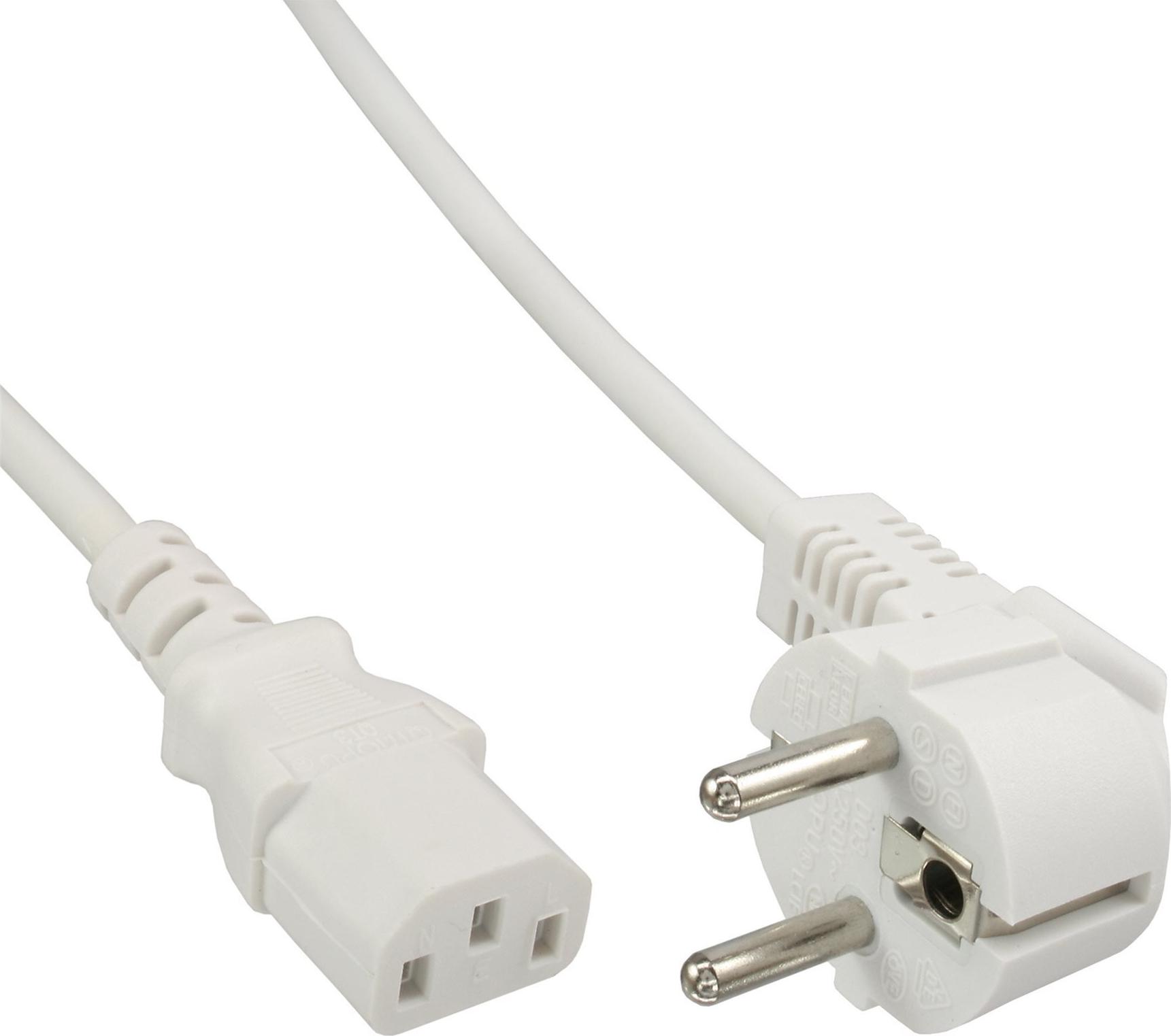 InLine® Netzkabel, Schutzkontakt gewinkelt auf Kaltgerätestecker C13, 1,0m, weiß (16651W)