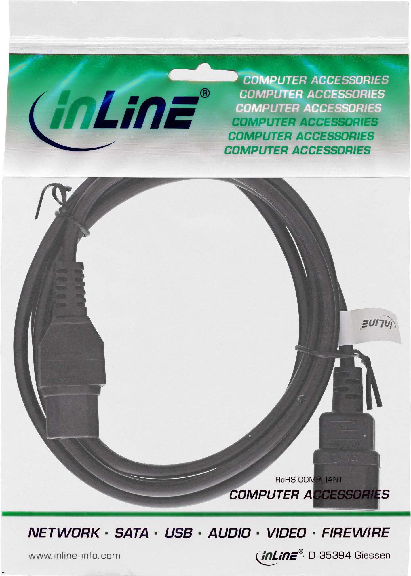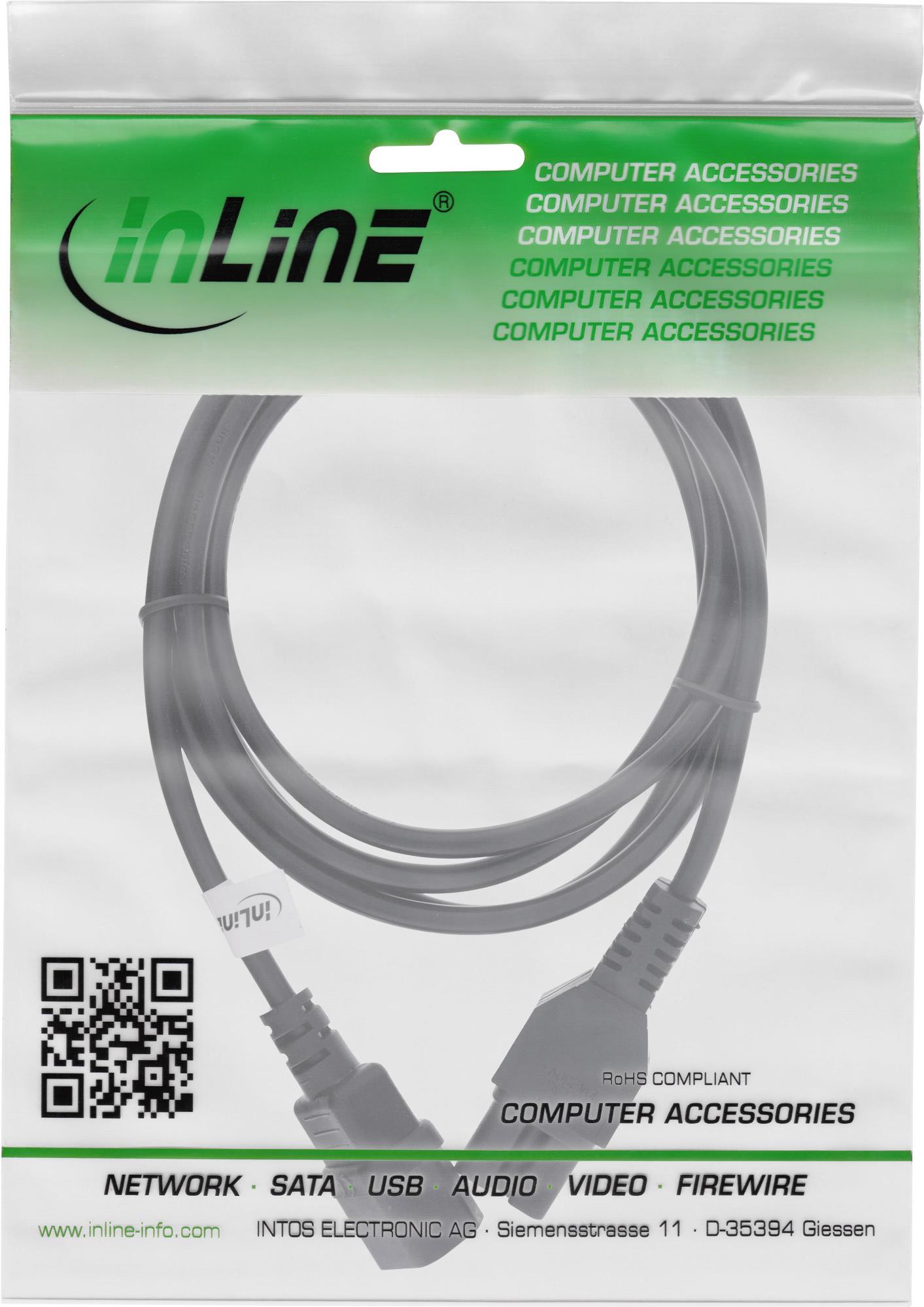 InLine - Spannungsversorgungs-Verlängerungskabel - IEC 60320 C15 bis IEC 60320 C14 - 1,0m - Schwarz (16811A)
