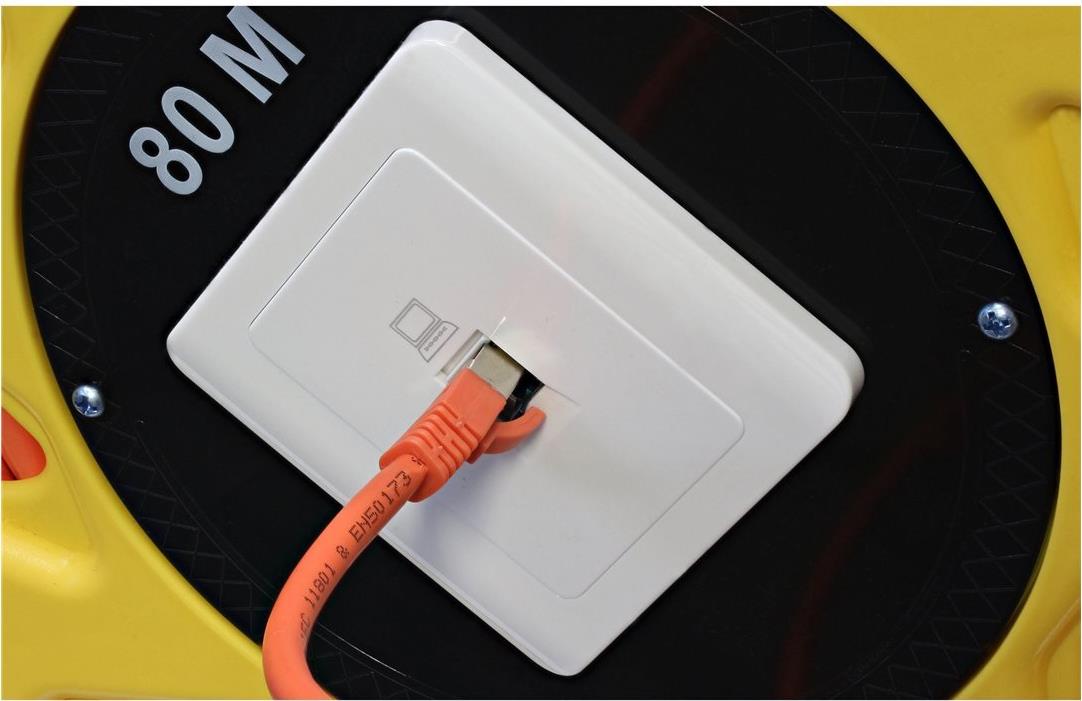 Kabeltrommel zur Verlängerung von Ethernetstrecken für temporäre Kabelanlagen bei Veranstaltungen, Vorführungen, Schulungen, Konferenzen, Übertragungswagen, Messen und bei Notfällen. Einfach Kabel abrollen und Patchkabel sowie Netzwerkgeräte ...