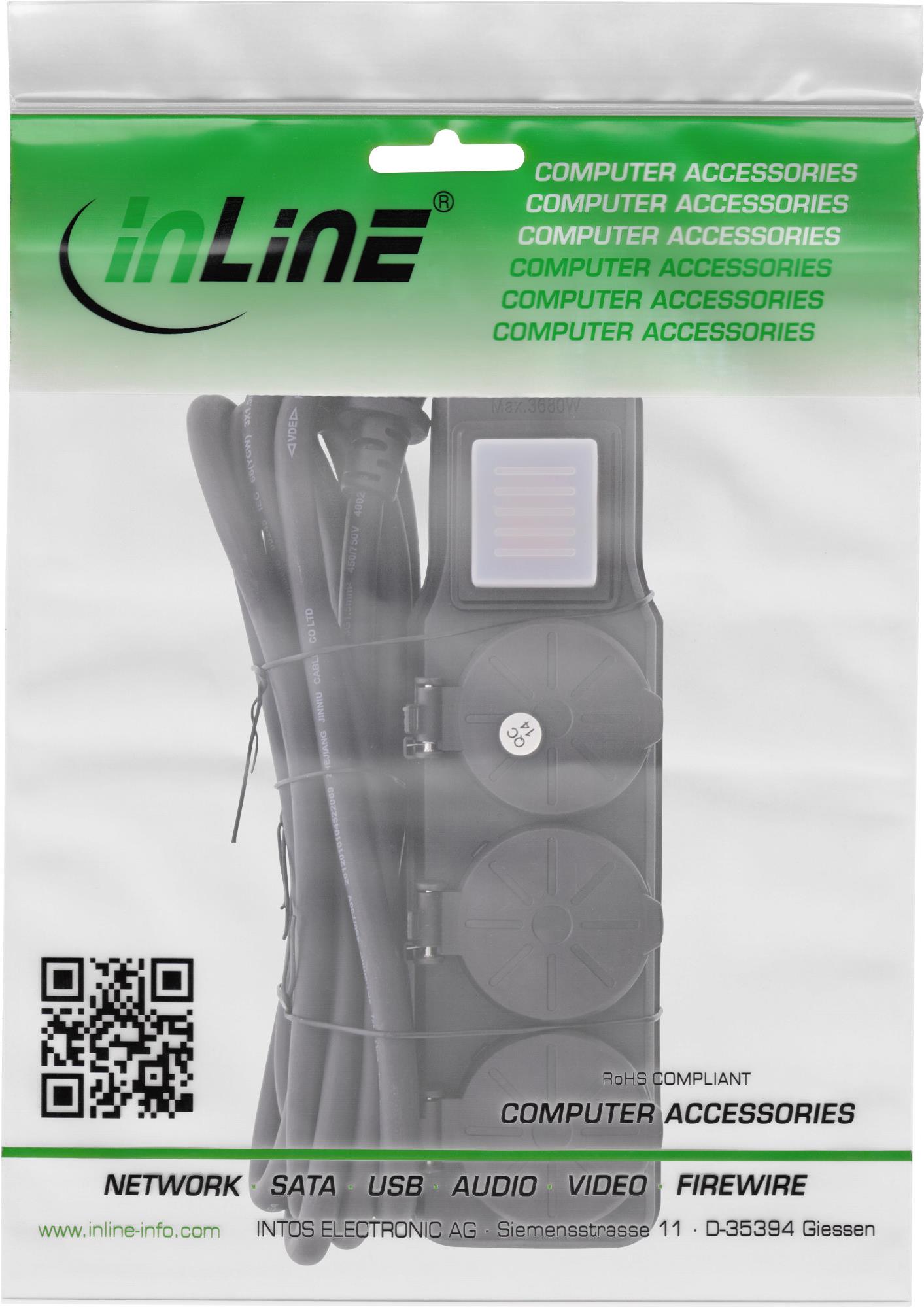 • InLine® Outdoor-Steckdosenleiste, 3-fach Schutzkontakt, IP44, mit Schalter, 10m (16493Q)