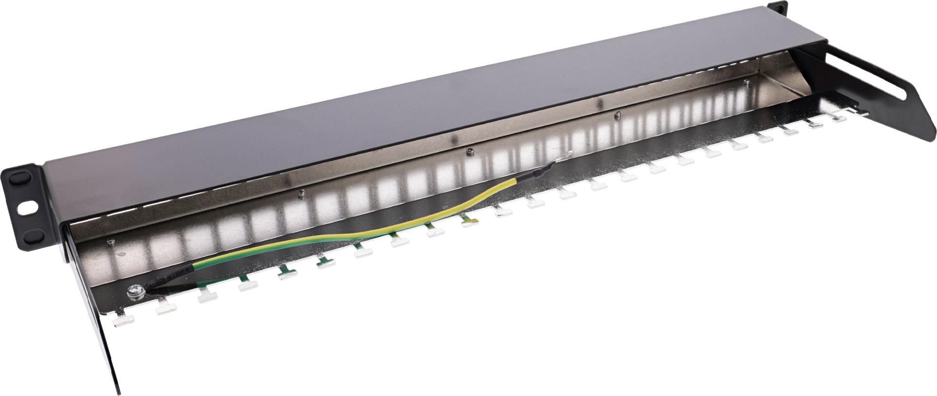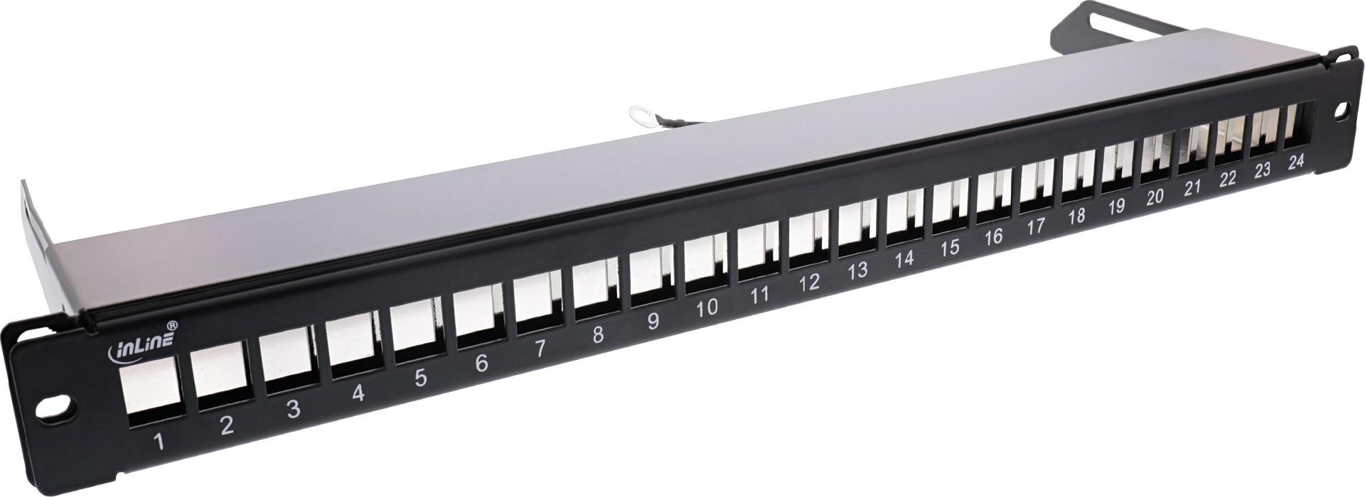 InLine® Patchfeld 24-fach, Keystone Snap-In Leerblech Patchpanel, 48,26cm (19"), 1HE, schwarz (76824K)