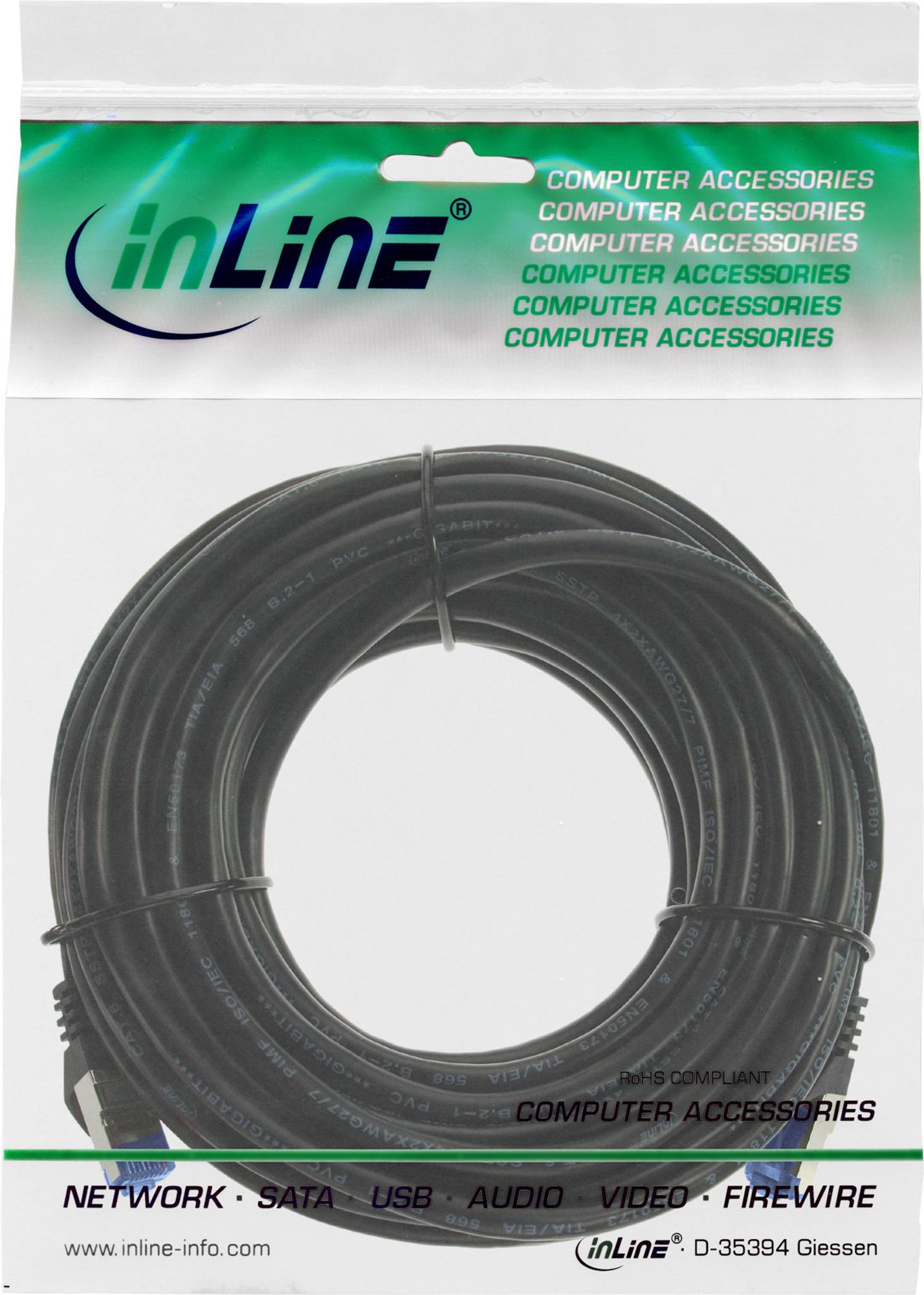 InLine - Patch-Kabel - RJ-45 (M) bis RJ-45 (M) - 5,0m - SFTP, PiMF - CAT 6a - halogenfrei, verseilt - Schwarz (74805S)