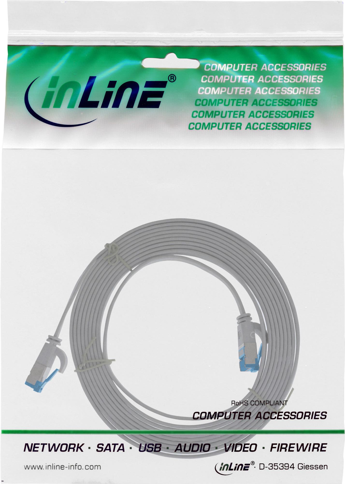 INLINE - Patch-Kabel - RJ-45 (M) zu RJ-45 (M) - 50 cm - U/FTP, PiMF - CAT 6a - halogenfrei, ohne Haken, verseilt, flach - Grau