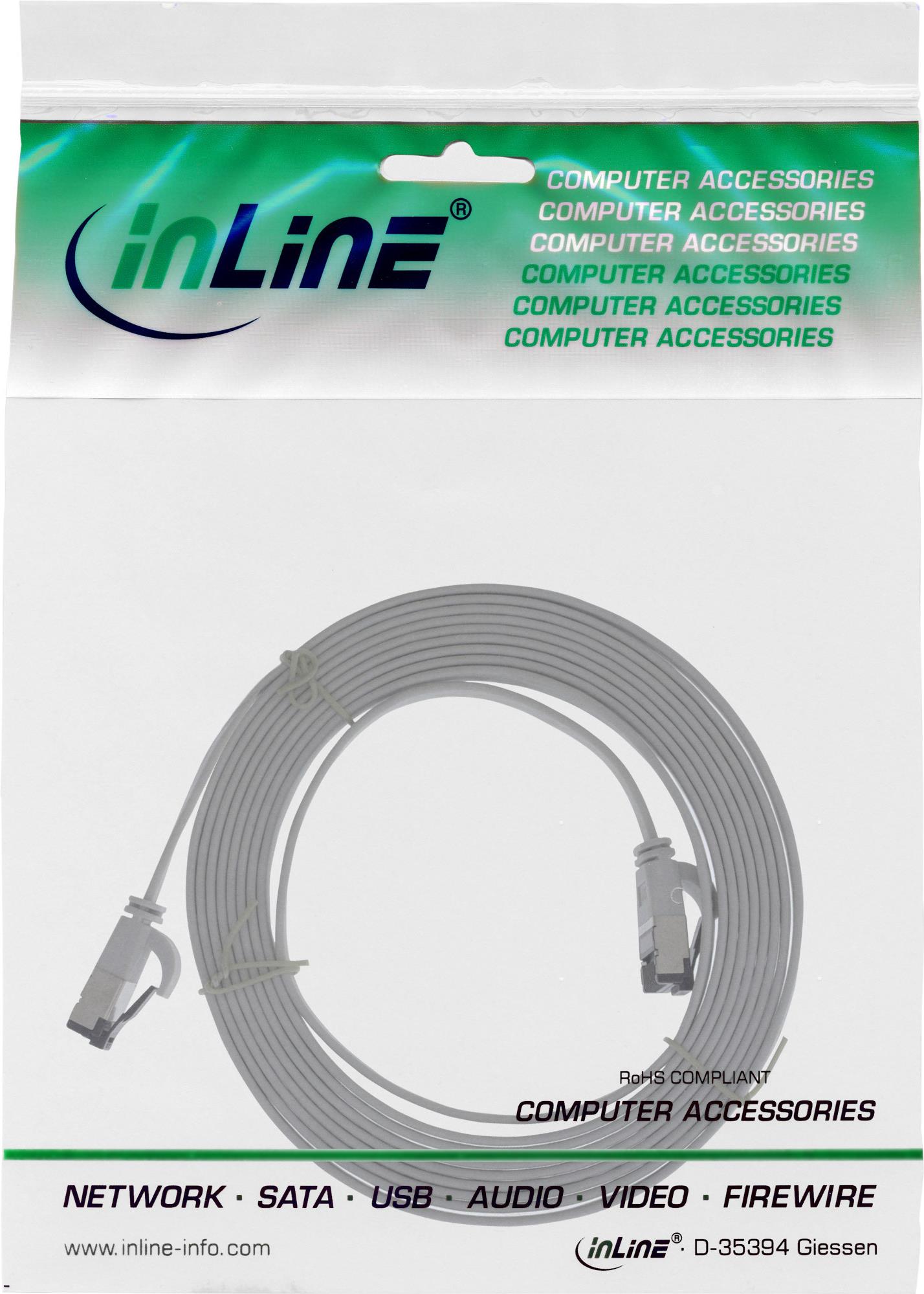 InLine® Patchkabel flach, U/FTP, Cat.8.1, TPE halogenfrei, grau, 0,5m (75855)