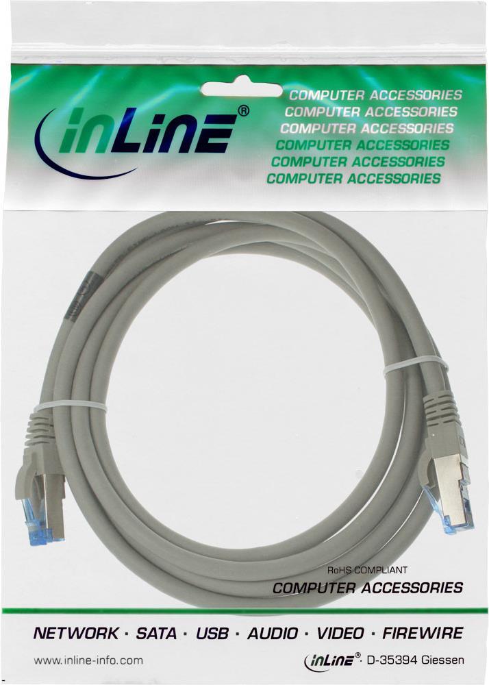 InLine - Patch-Kabel - RJ-45 (M) zu RJ-45 (M) - 25cm - SFTP, PiMF - CAT 6a - halogenfrei, rund - Grau (76821)