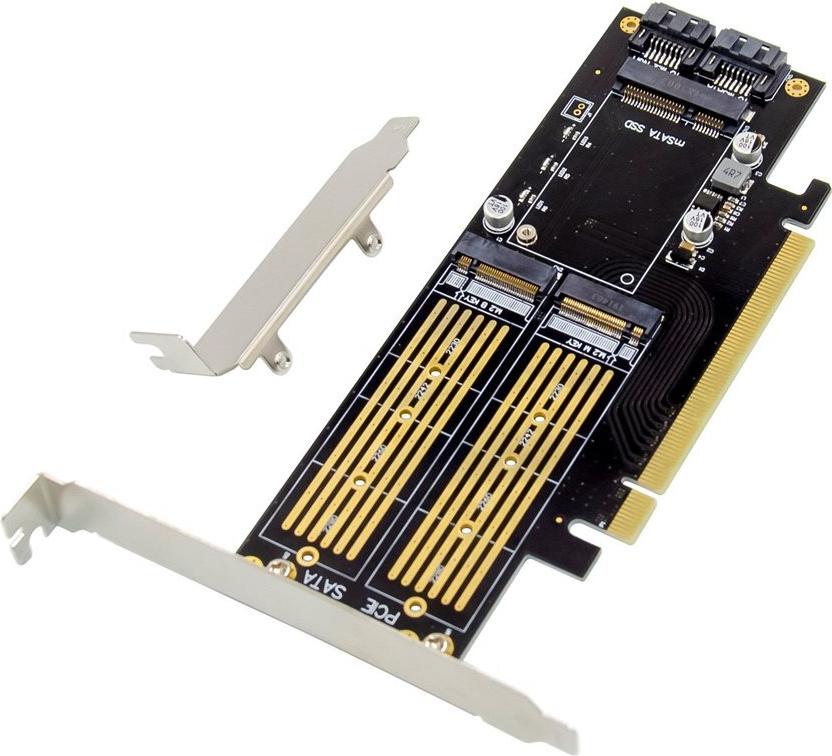 • Multifunktionale PCIe-Karte zur Erweiterung des internen Speichers mit M.2 NVMe, M.2 SATA und mSATA