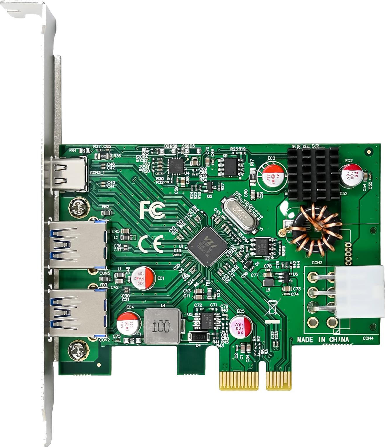 Diese InLine® Schnittstellenkarte erweitert den PC um zwei externe USB-A sowie einen USB-C Anschluss mit einer maximalen Datenübertragungsrate von 5 Gb/s. Es können verschiedene USB-Geräte, wie bspw. Dockingstations, Cardreader, Massenspeicher usw., verbunden werden. Der USB-C Port unterstützt die Power Delivery (PD3.0) Funktion. Darüber können angeschlossene Geräte wie bspw. Smartphones, Tablets oder Notebooks geladen werden.