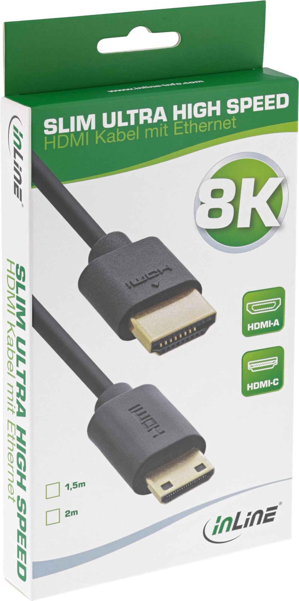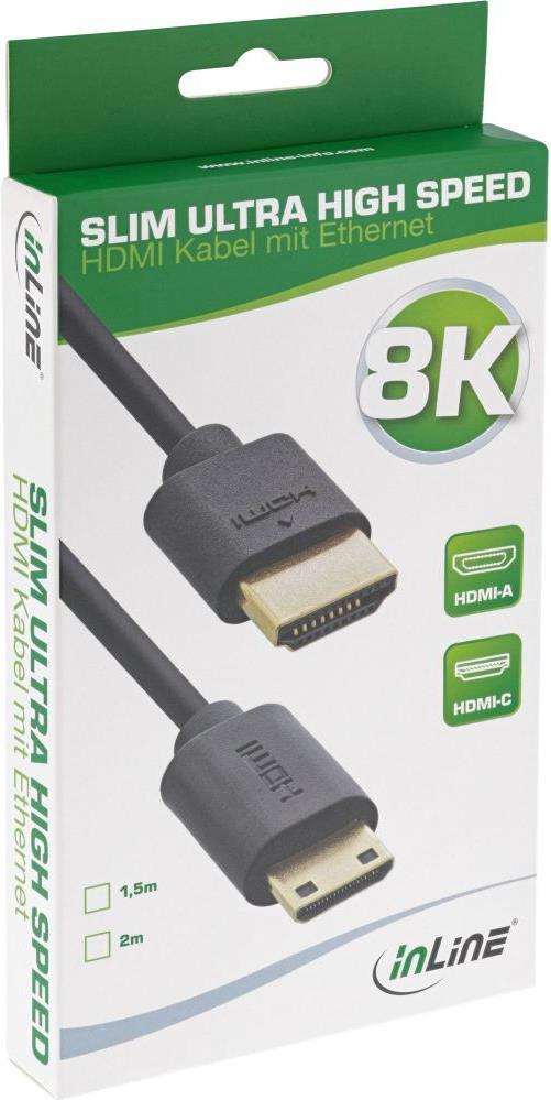 InLine Slim Ultra High Speed HDMI Kabel - 8K4K - A Stecker / C Stecker (Mini) - 2m (17902C)