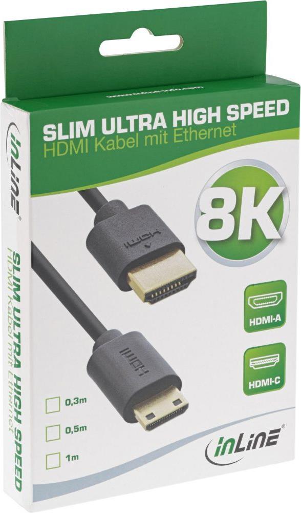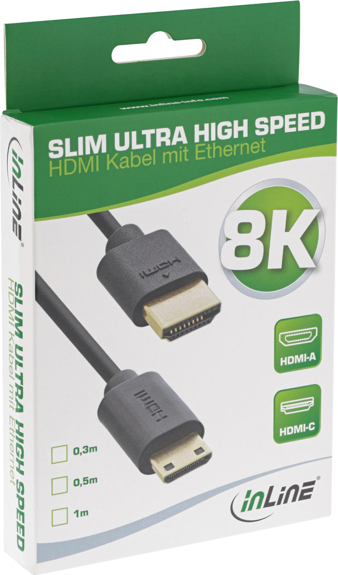 InLine Slim Ultra High Speed HDMI Kabel - 8K4K - A St. / C St. (Mini) - 0,5m - 0,5 m - HDMI Typ A (Standard) - HDMI Type C (Mini) - 3D - 48 Gbit/s - Schwarz (17955C)