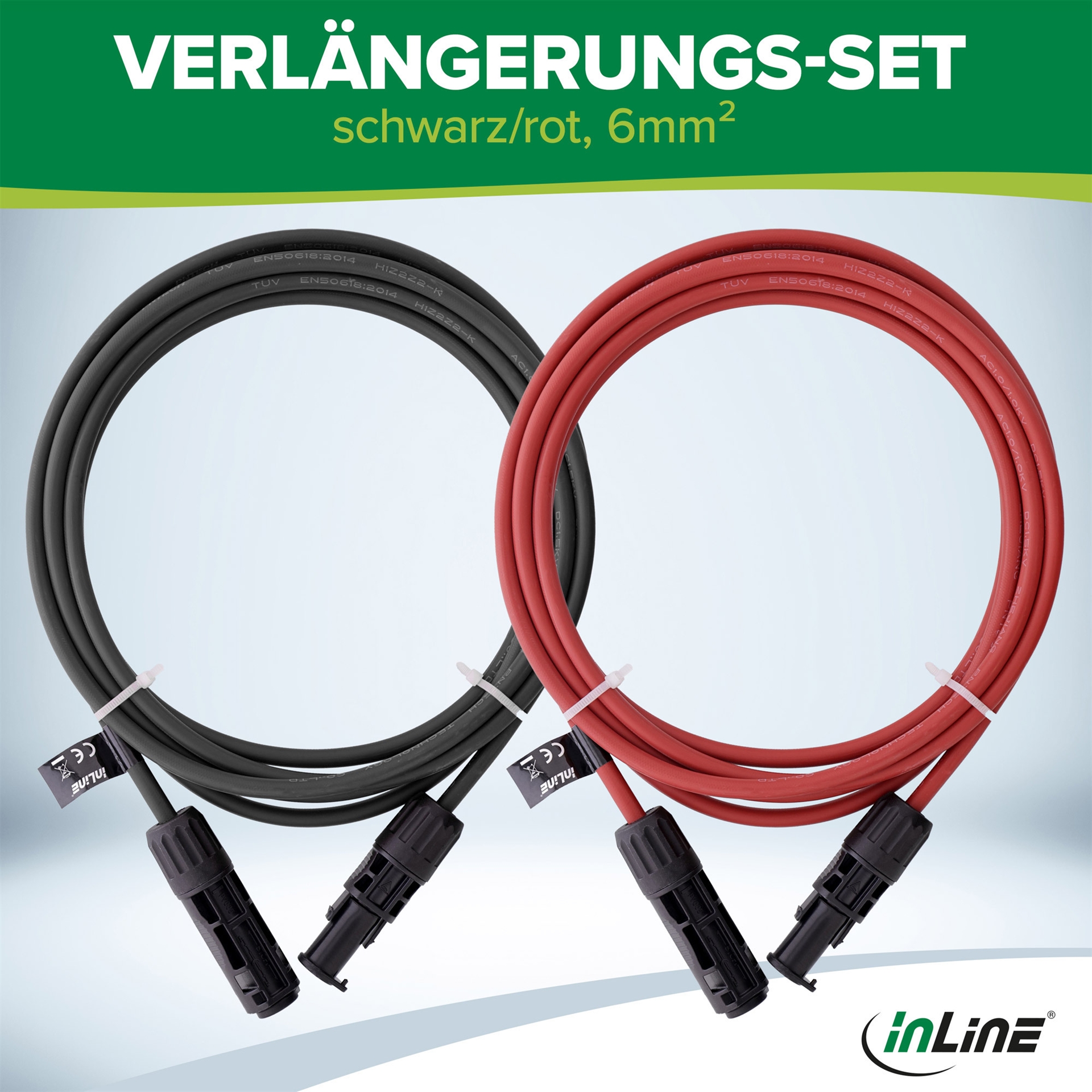 InLine Solarkabel Verlängerungs-Set inkl. Solarstecker 6mm² schwarz/rot 0,75m (95677)