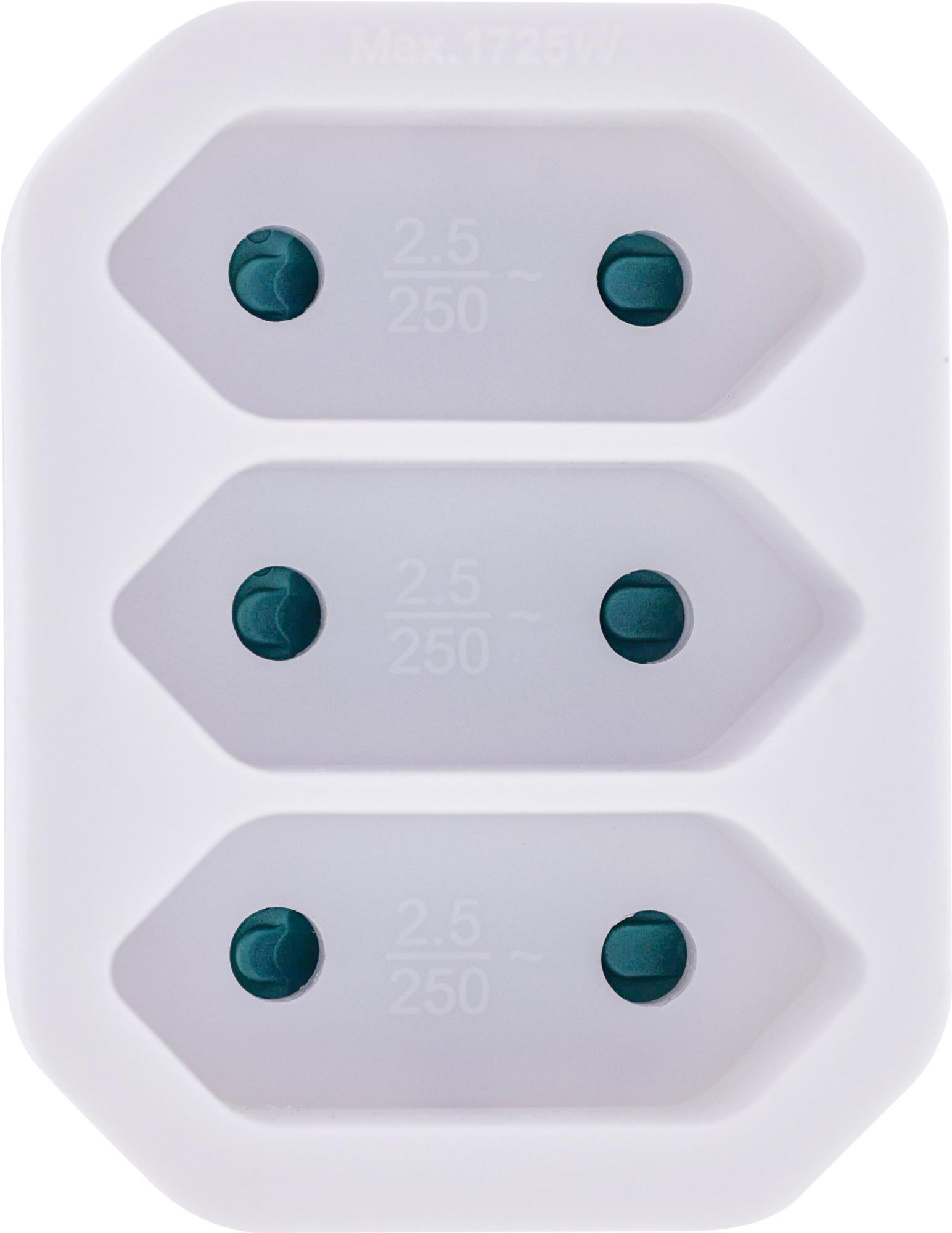 InLine® Steckdosenadapter, Schutzkontakt Stecker an 3x Eurobuchse, mit erhöhtem Berührungsschutz, weiß