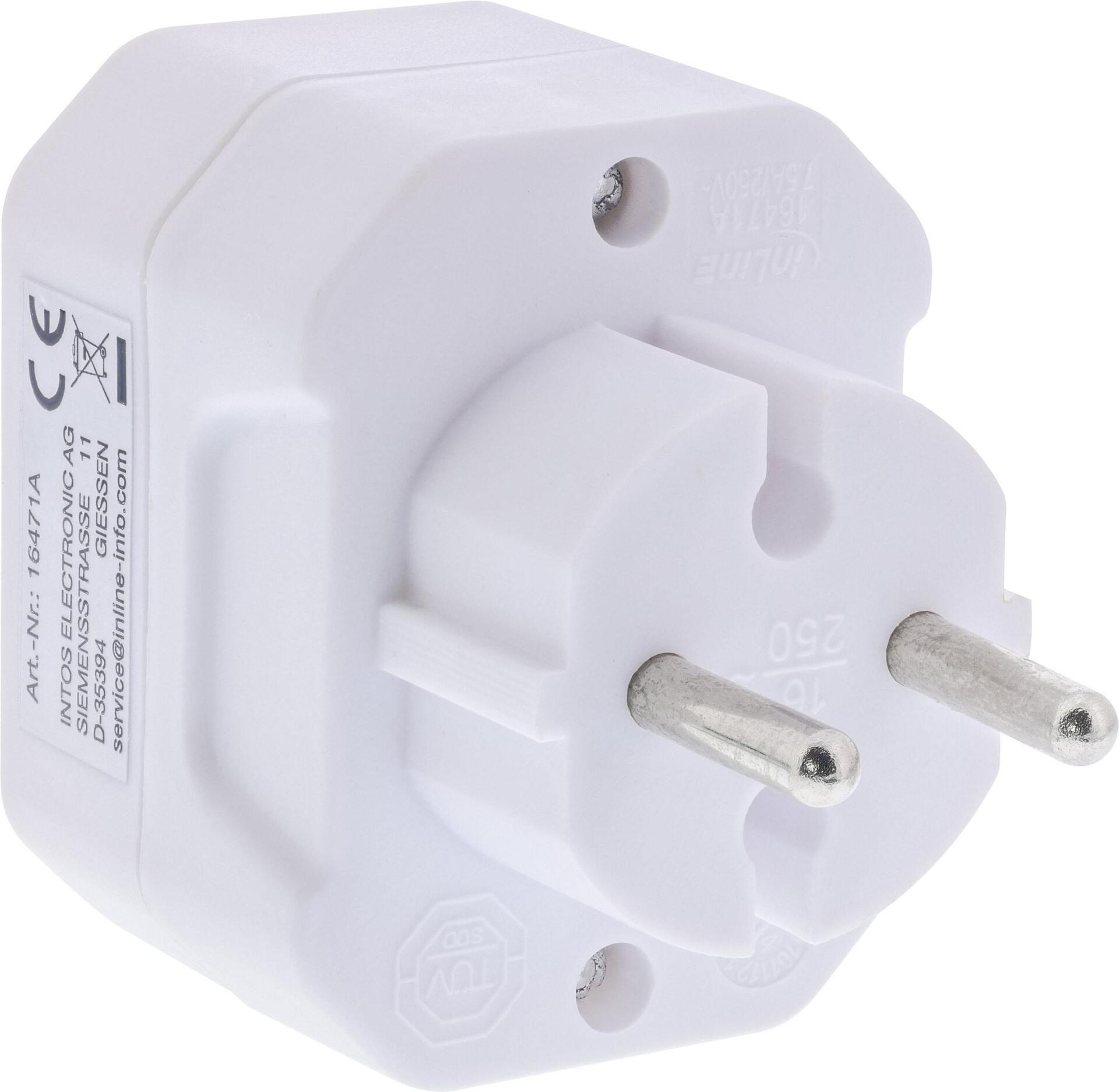 Der InLine® Steckdosenadapter bietet eine praktische und sichere Lösung, um mehrere Geräte, die einen Eurostecker verwenden, gleichzeitig an einer Schutzkontaktsteckdose zu betreiben.• Output: max. 2,5 A / Eurobuchse