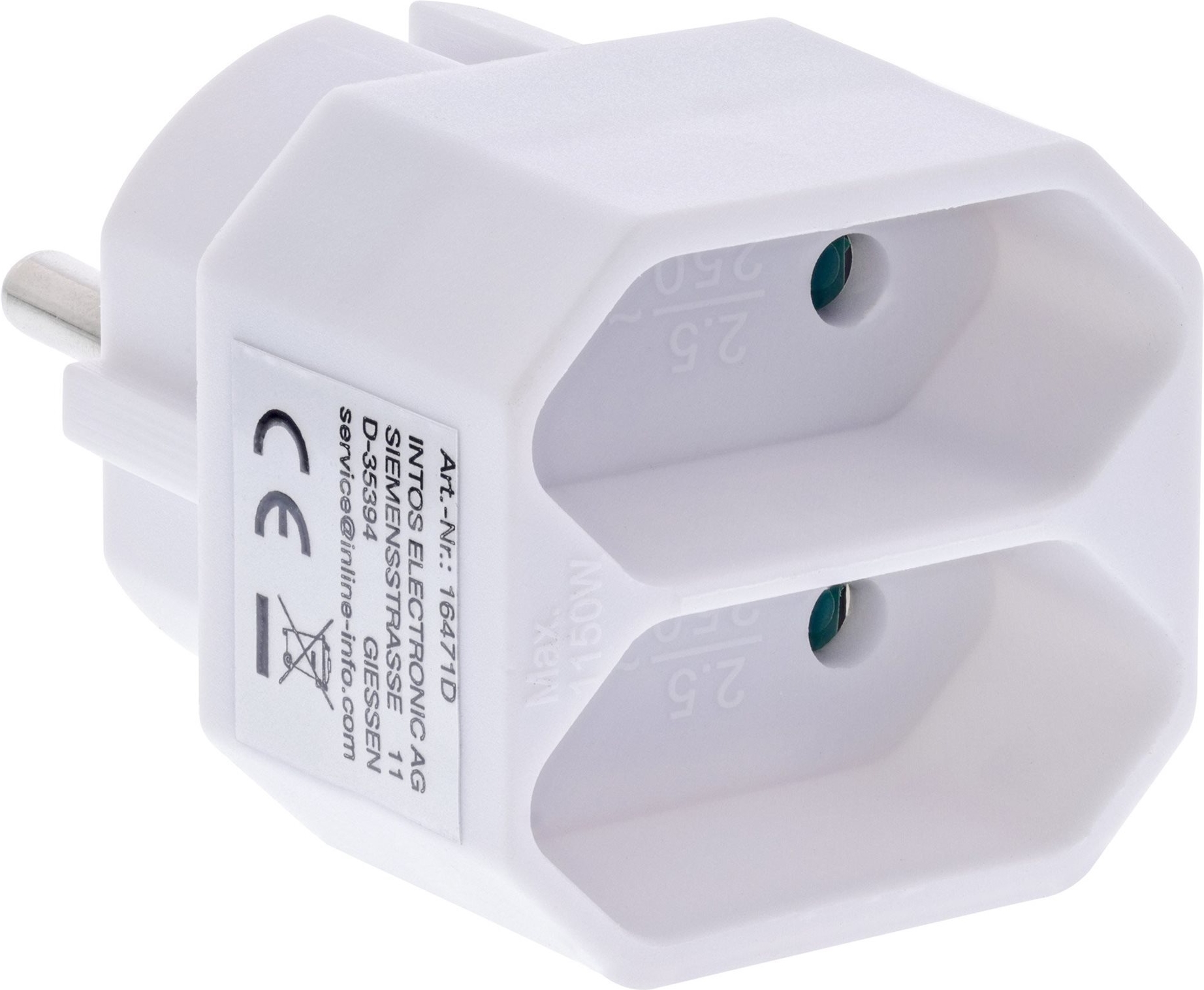 Der InLine® Steckdosenadapter bietet eine praktische und sichere Lösung, um mehrere Geräte, die einen Eurostecker verwenden, gleichzeitig an einer Schutzkontaktsteckdose zu betreiben.• Output: max. 2,5 A / Eurobuchse