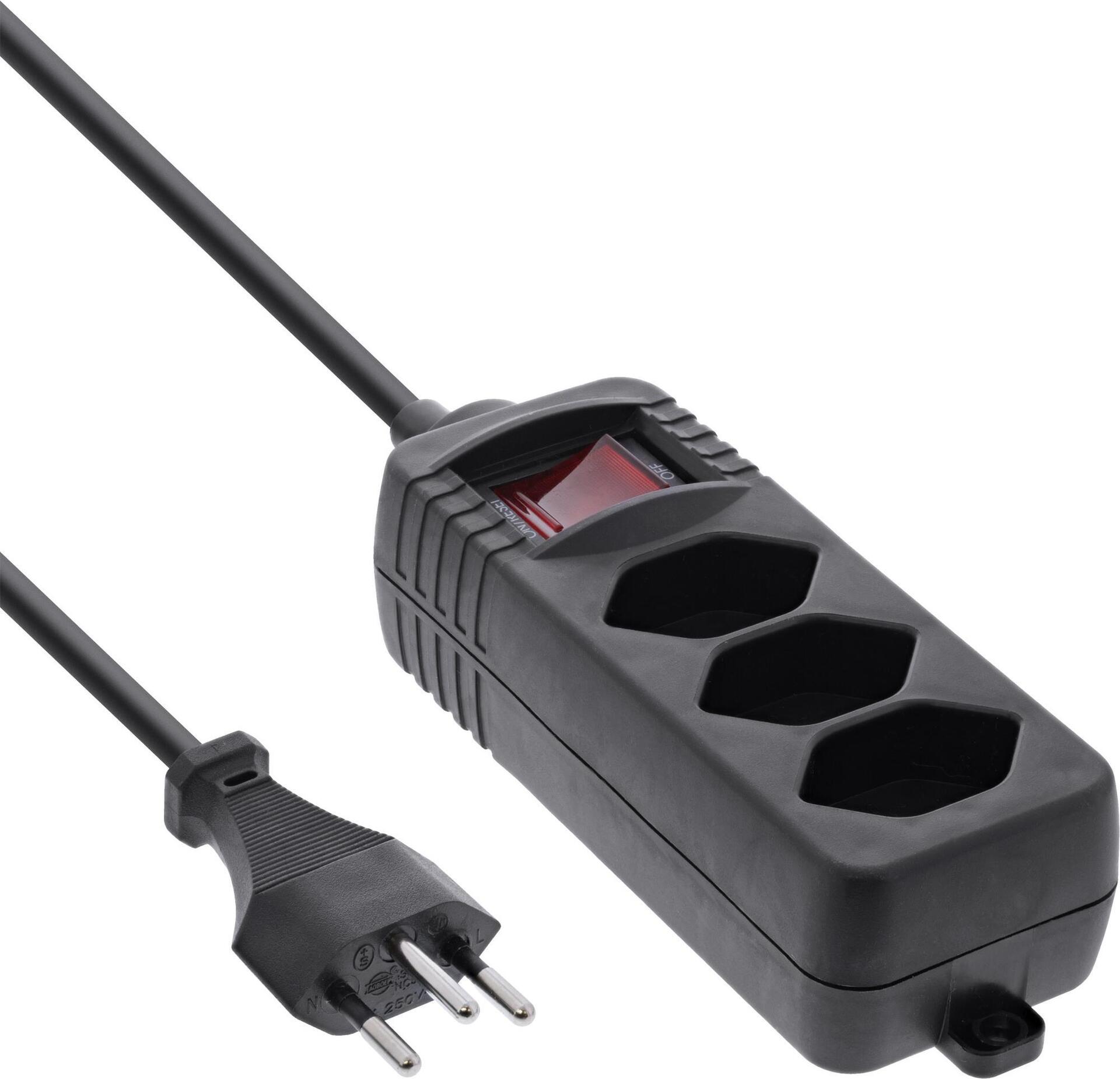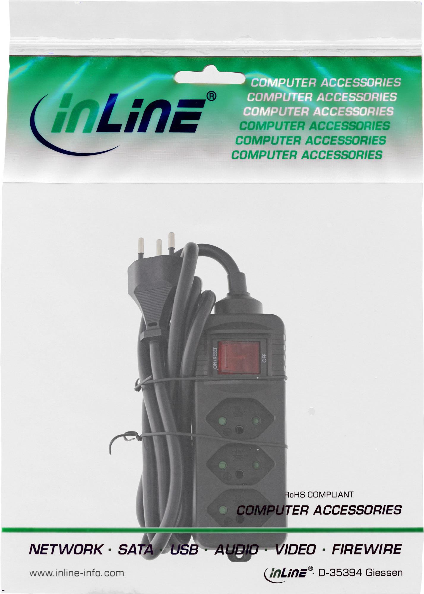 InLine® Steckdosenleiste SCHWEIZ, 3-fach, mit Schalter, 1,5m, schwarz (16431Y)
