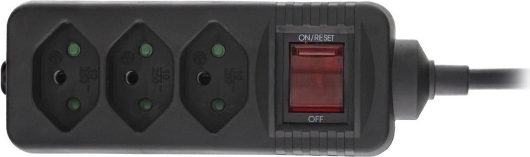 InLine® Steckdosenleiste SCHWEIZ • Steckertyp: T12• Buchsentyp: Typ13• Ausrichtung Anschlüsse: 90°• Anzahl Anschlüsse: 3• Kabel:H05VV-F3G1,5mm²• Eingangsspannung: 250V• max. Leistung: 2.300W• Kabellänge: 1,5m• Mit erhöhtem Berührungsschutz• Farbe: schwarz• Schalter: Ja• Material: Kunststoff