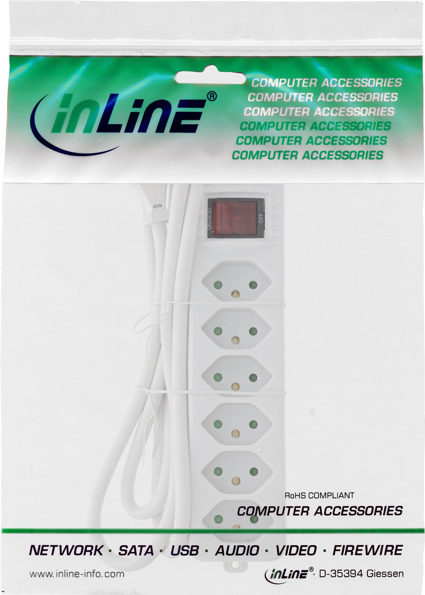 InLine® Steckdosenleiste SCHWEIZ • Stecker: 6x CH Type 13