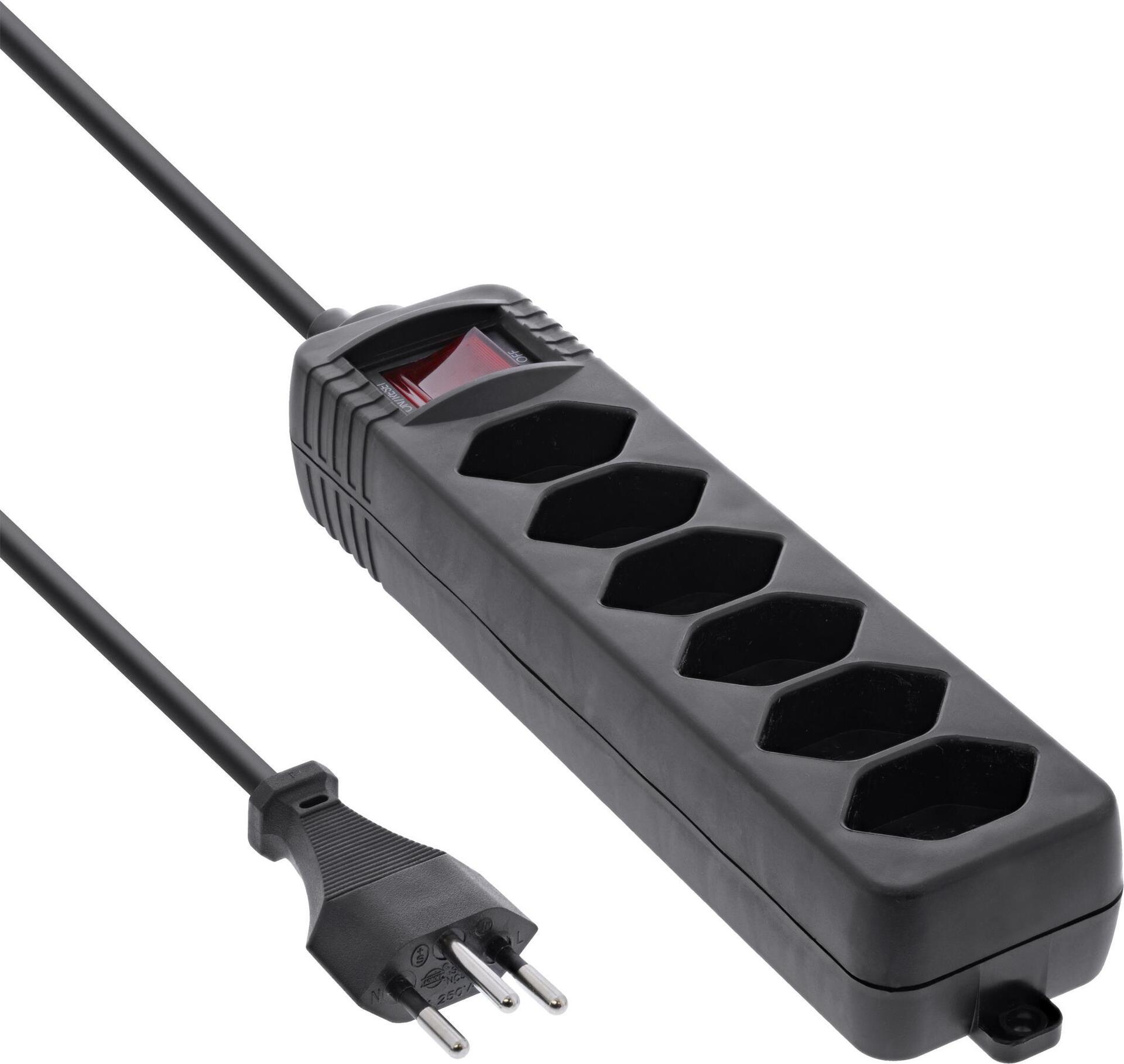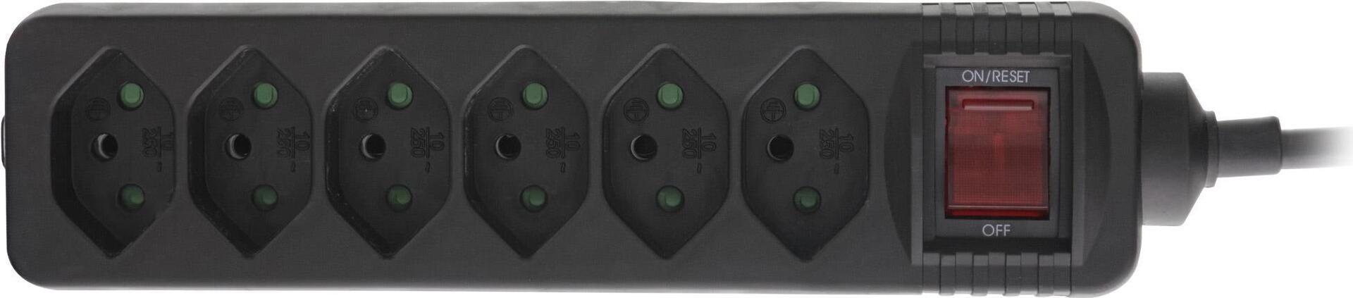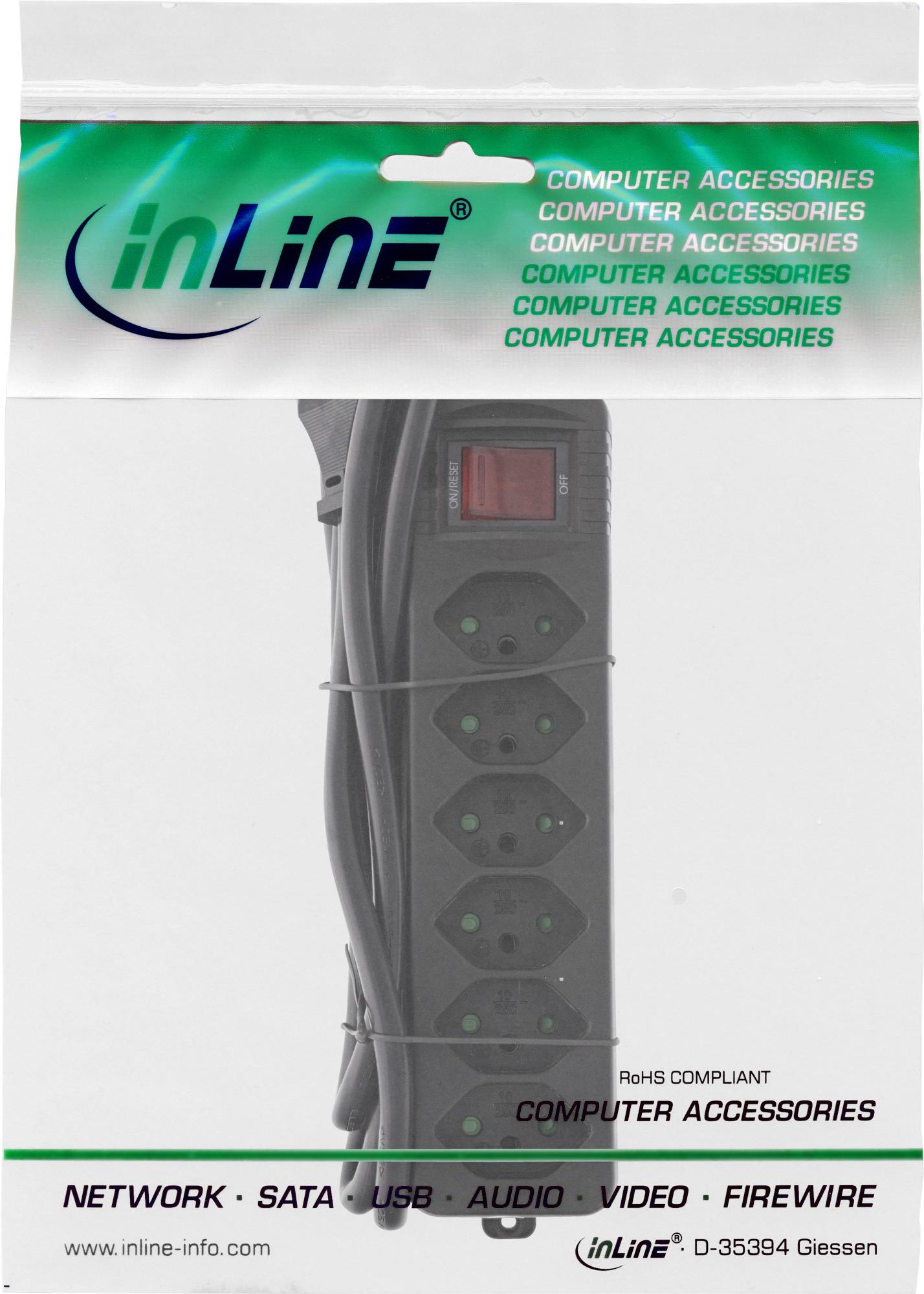 InLine® Steckdosenleiste SCHWEIZ, 6-fach, mit Schalter, 1,5m, schwarz (16451Y)