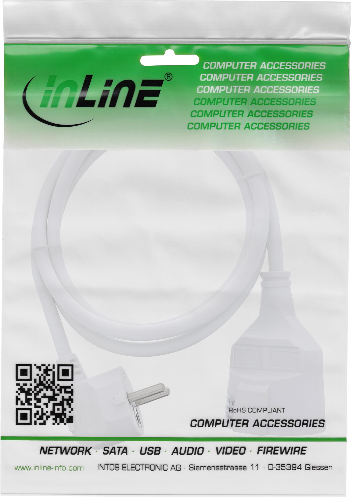 InLine® Strom-Verlängerung Schutzkontakt Stecker gewinkelt / Buchse, weiß, 7m (16407U)