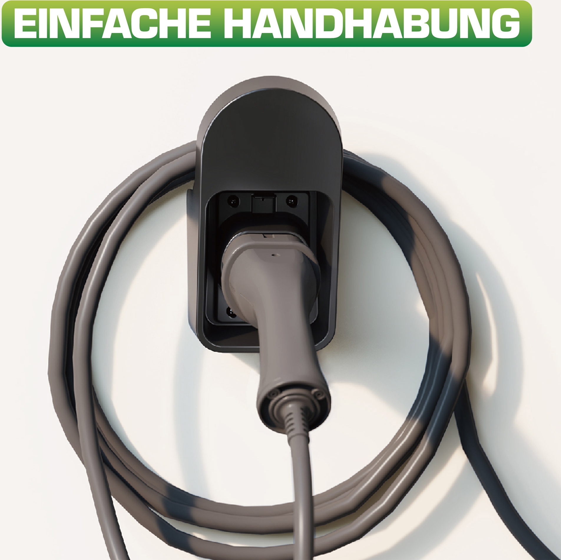 • Praktische Kabelhalterung: Das EV-Ladekabel ist immer griffbereit dank der ordentlichen Aufbewahrung an der Wand