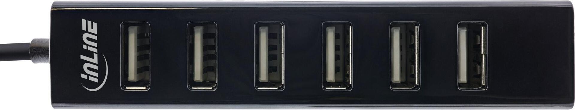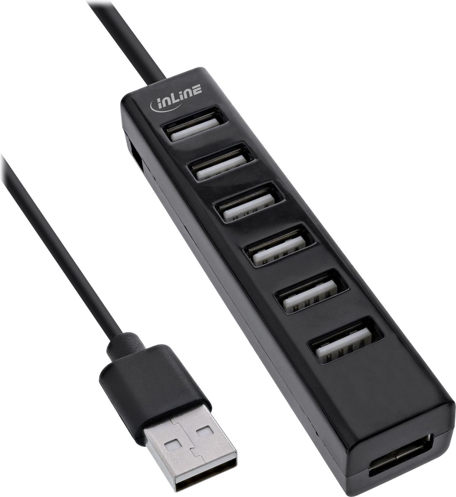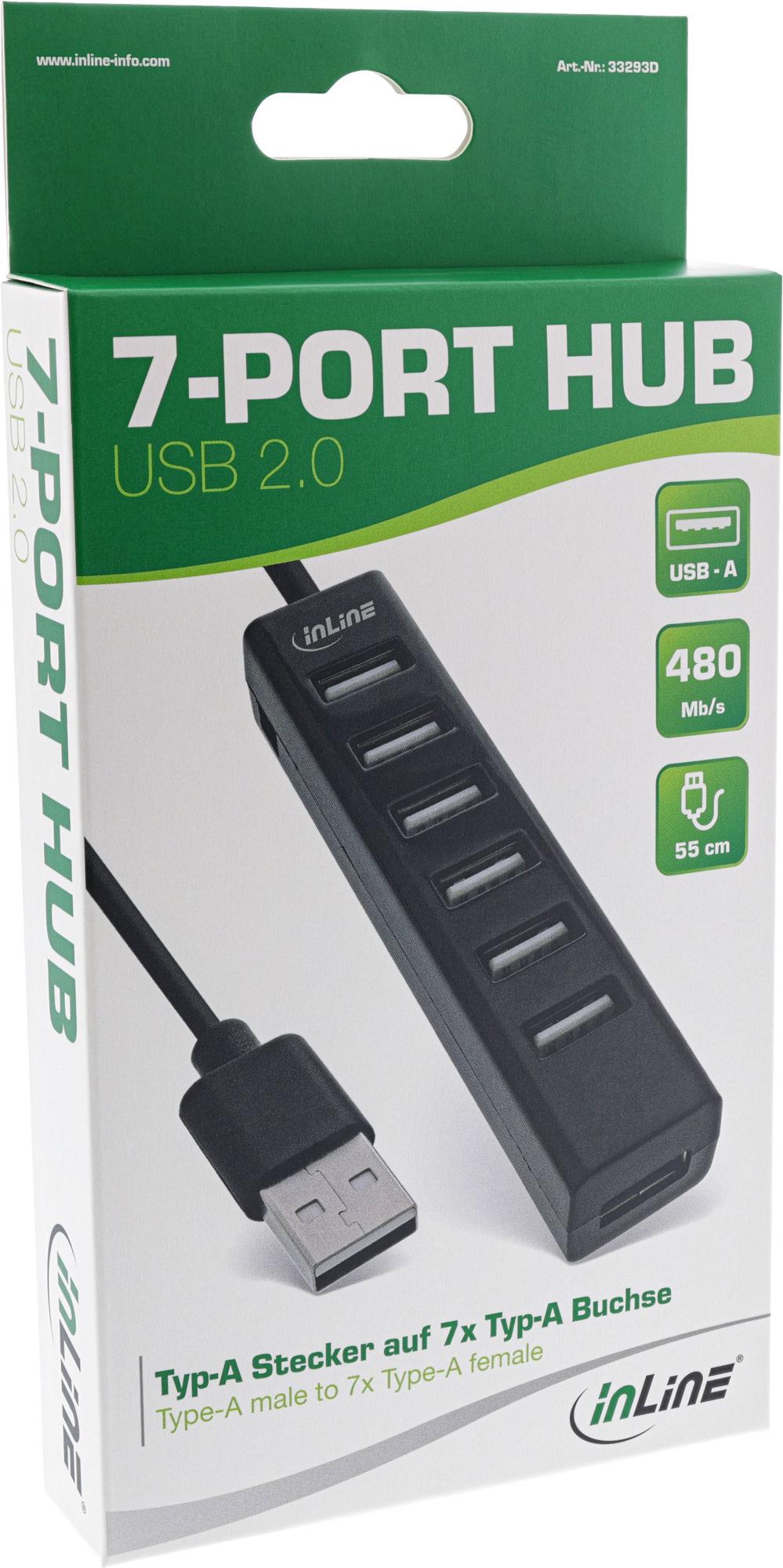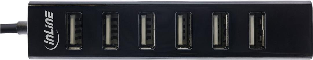 InLine® USB 2.0 Hub, 7-Port, schwarz, mit 1m USB DC Kabel, schwarz (33293D)