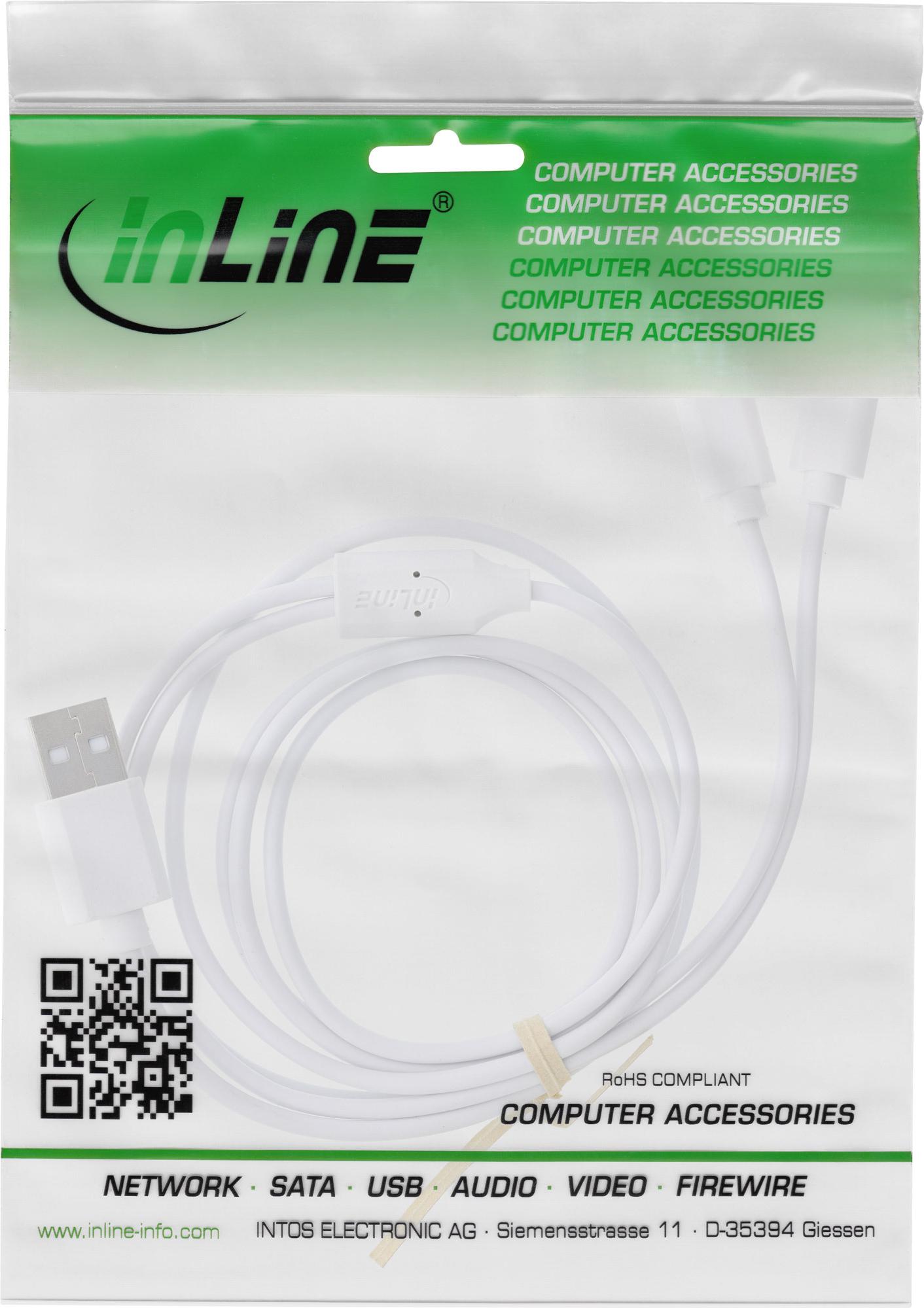 InLine USB 2in1 Y-Ladekabel - 1x USB-A Stecker an 2x USB-C Stecker - weiß - 2m (35122W)
