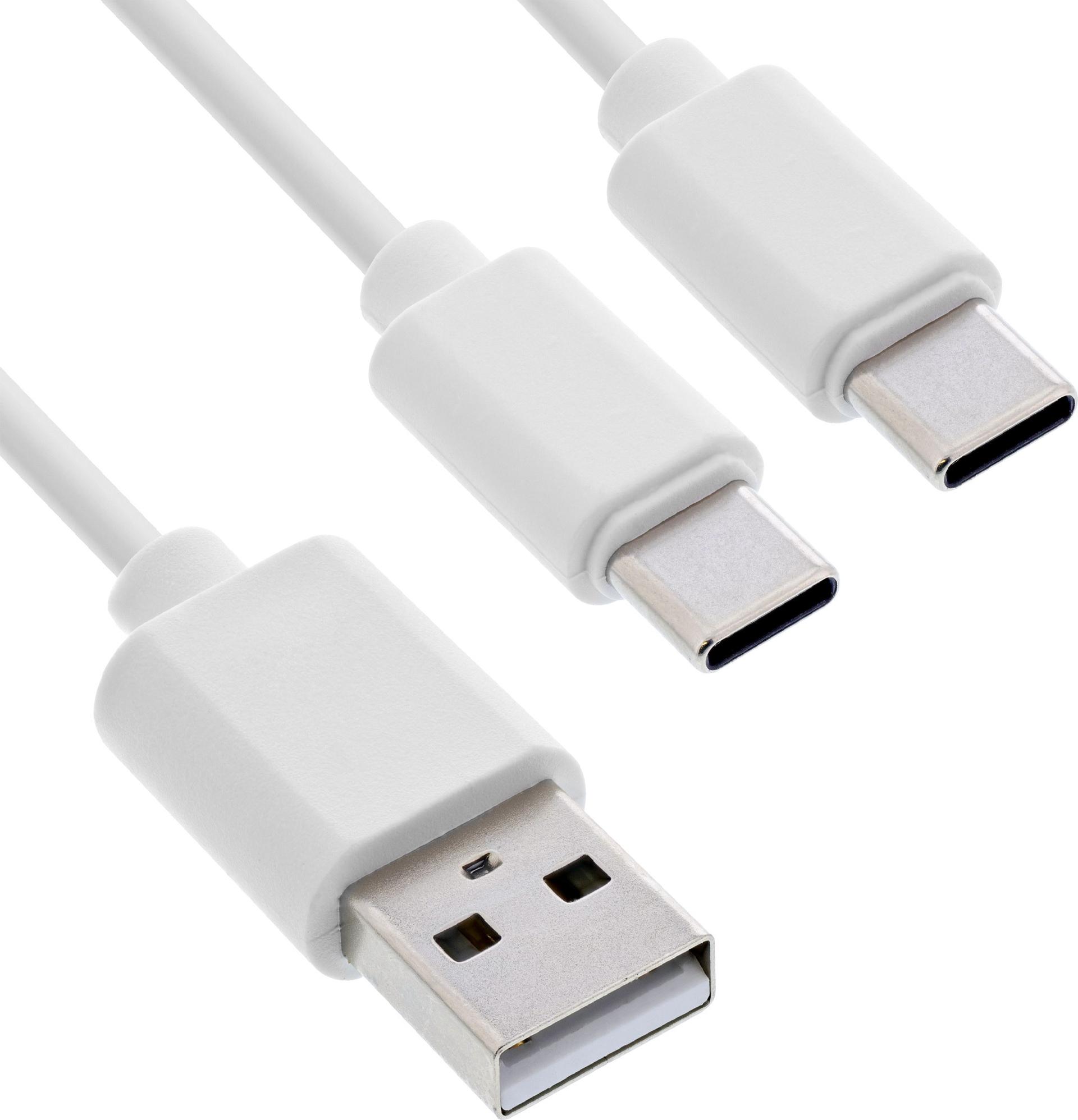 InLine USB 2in1 Y-Ladekabel - 1x USB-A Stecker an 2x USB-C Stecker - weiß - 0,5m (35126W)