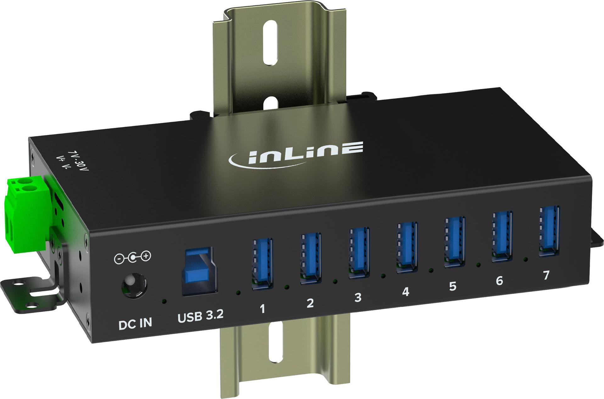 InLine USB 3.2 Gen.1 Industrie-Hub - 7 Port - Aluminiumgehäuse - mit Netzteil (353956B)