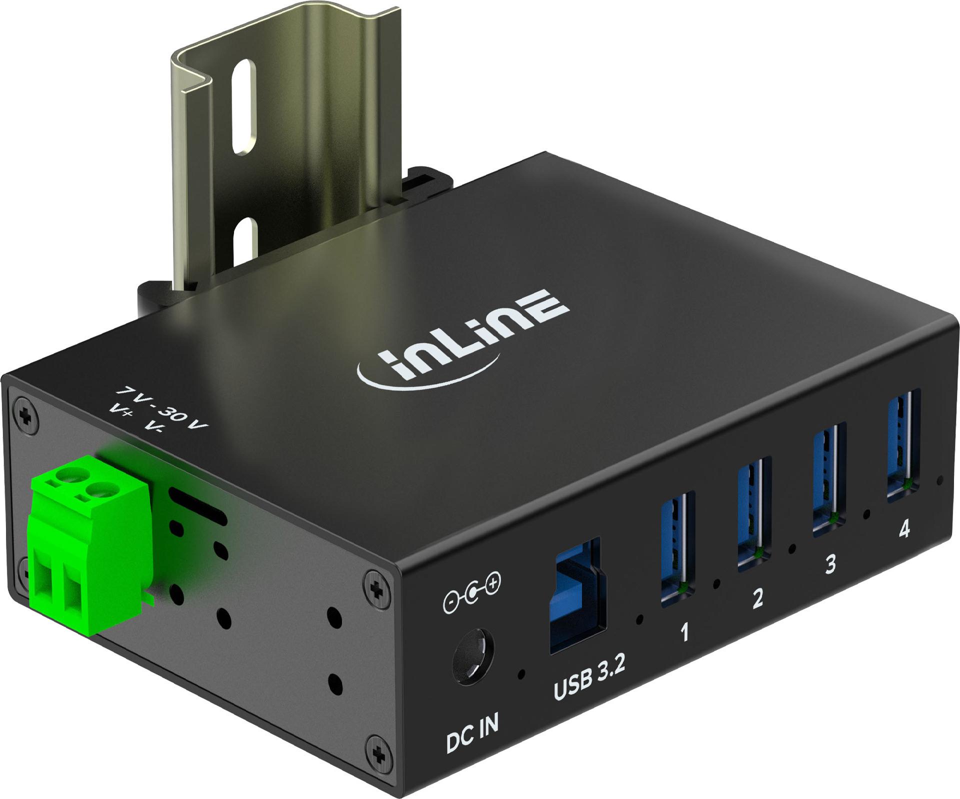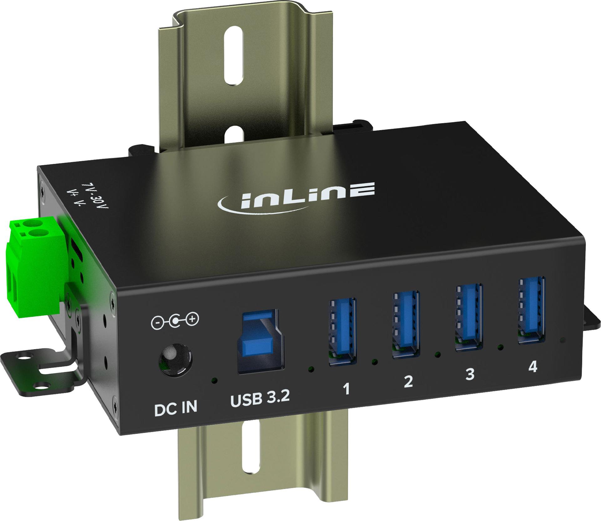InLine USB 3.2 Gen.1 Industrie-Hub - 4 Port - Aluminiumgehäuse - mit Netzteil (35396A)