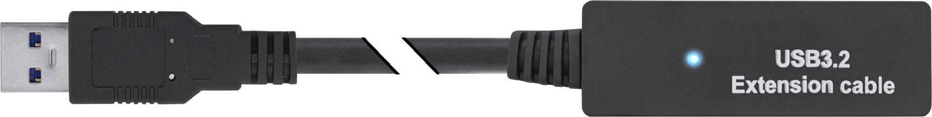 Das leistungsstarke aktive USB 3.2 Gen.1 Verlängerungskabel von InLine ist die ideale Lösung, um USB-Ports von unzugänglichen Stellen an die gewünschte Position zu verlegen. Dabei können durch die integrierte Elektronik lange Distanzen von bis zu 15 Metern verlust- und störungsfrei überbrückt werden. Die USB-Verlängerung findet Anwendung bei Festplatten, Drucker, Webcams, Headsets, Mäusen, Tastaturen und anderen USB-Geräten. Die Datentransferrate von bis zu 5 Gb/s ermöglicht Ihnen eine blitzschnelle und zuverlässige Datenübertragung. Für Verlängerungen ab 10 Metern und länger empfehlen wir die Verwendung des mitgelieferten Steckernetzteils.