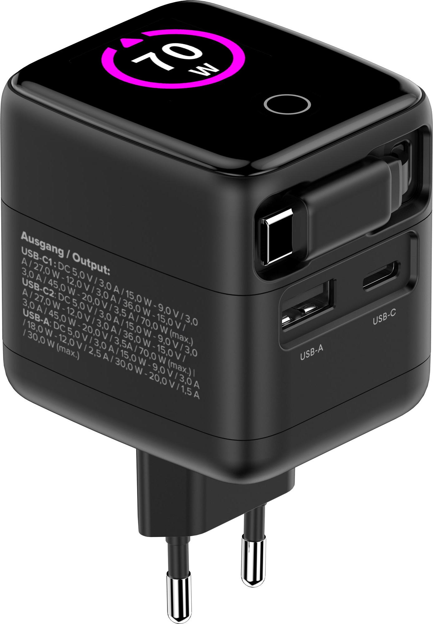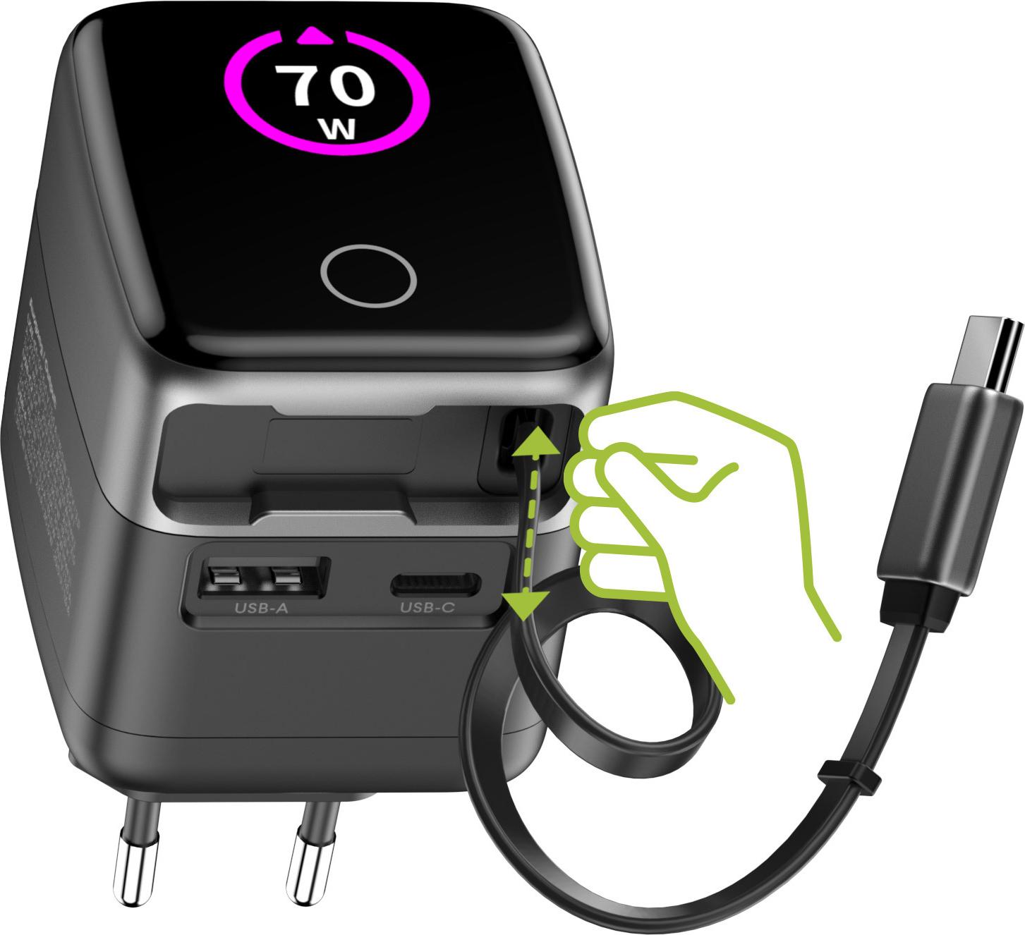 InLine USB Netzteil - 70W - GaN - USB-C PD + USB-A QC - Kabel 60cm - schwarz (31507R)