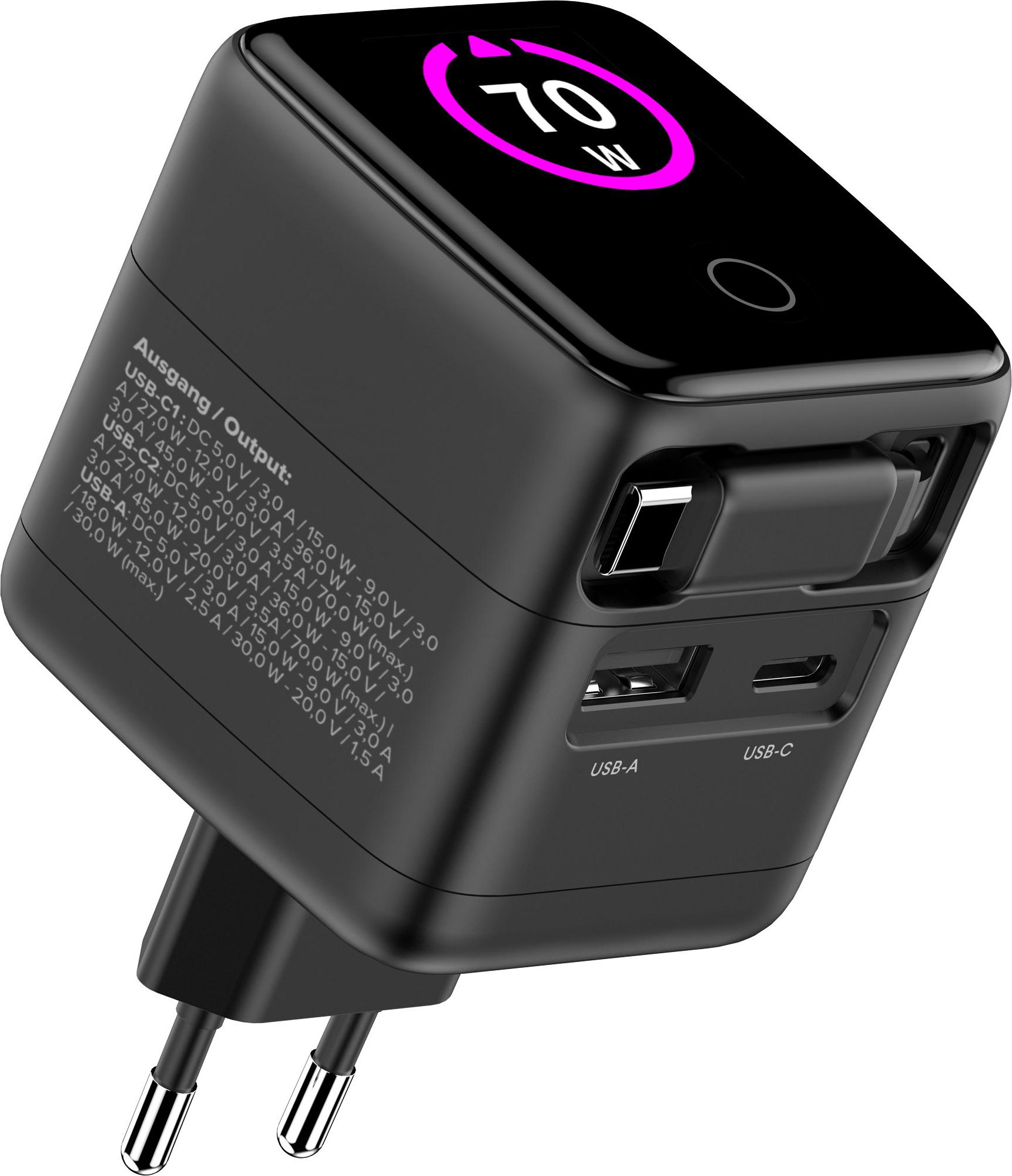 Der Netzadapter wurde mit Blick auf Sicherheit entwickelt und verfügt über einen Kurzschlussschutz, einen Überspannungsschutz und eine Temperaturabschaltung, um Ihre Geräte während des Ladevorgangs zu schützen. Das integrierte Display verbessert die Benutzerfreundlichkeit, indem es Ladeinformationen in Echtzeit anzeigt. Darüber hinaus nutzt der Adapter die Fast Charge-Technologie und unterstützt sowohl Power Delivery als auch Qualcomm Quick Charge, wodurch ein schnelles Laden kompatibler Geräte gewährleistet ist. Dieses Netzteil ist ideal für Benutzer, die eine zuverlässige und effiziente Ladelösung suchen.