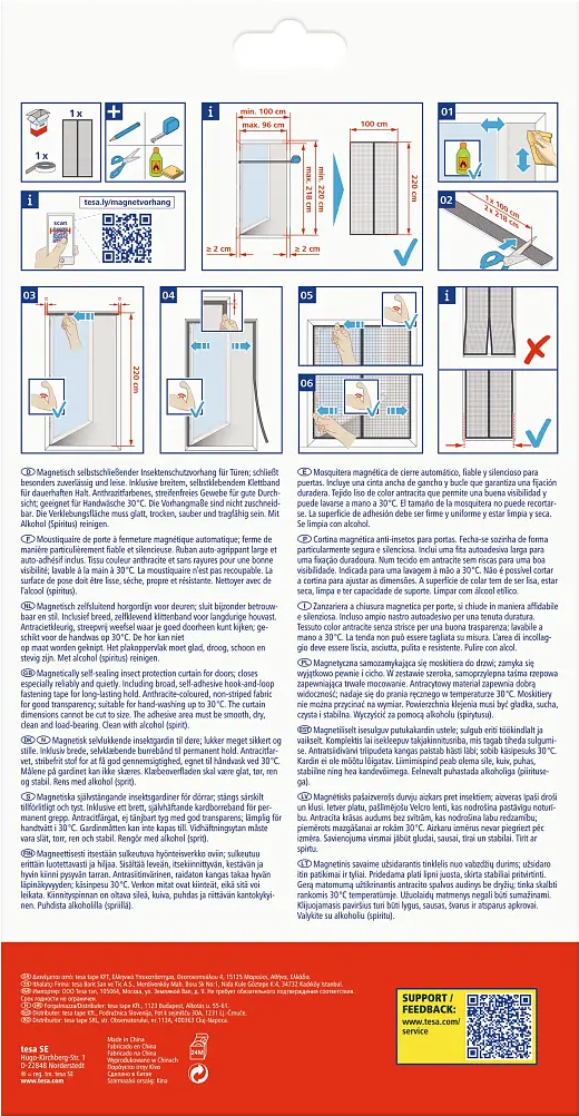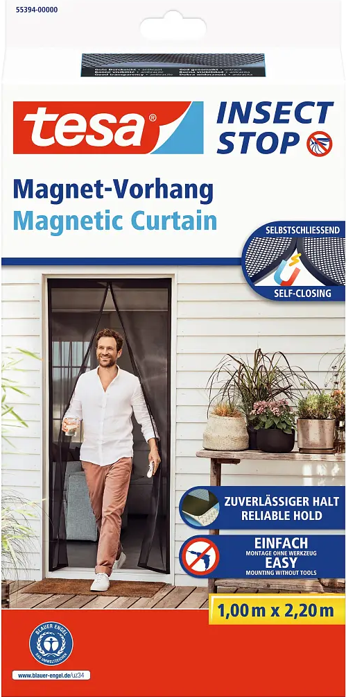 Der Insektenvorhang für Terrassen- und Balkontüren kombiniert zuverlässigen Insektenschutz mit werkzeugloser, bohrfreier Montage. 30 integrierte Magnete ermöglichen einfaches Durchgehen ohne Öffnen und Schließen von ...