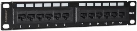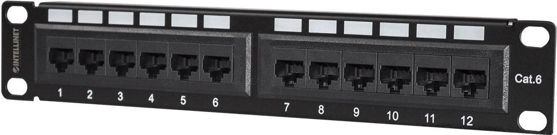 Intellinet - Patch Panel - Rack montierbar - RJ-45 X 12 - Schwarz, RAL 9005 - 1U - 25,4 cm (10") (720748)