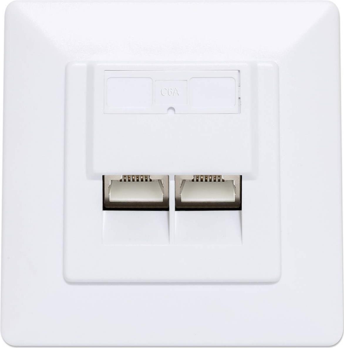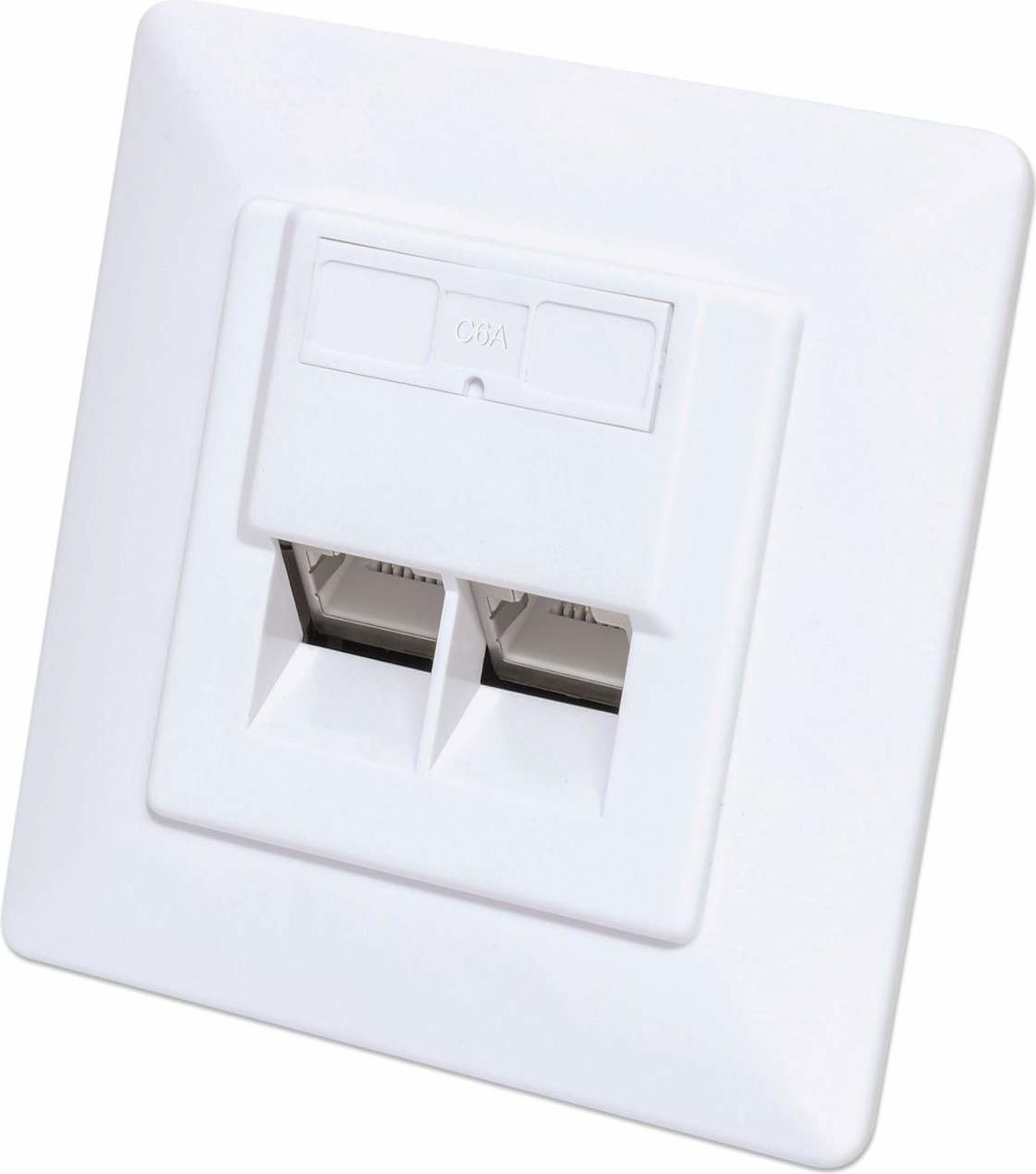 Intellinet - Wandplatte - Cat6 10G - mit Beschriftungsfenster - RJ 45 - abgewinkelt - 2 Netzwerksteckdosen - RAL 9003, Signal White (771900)