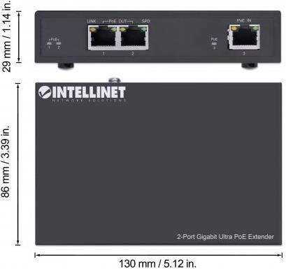 2 x Ethernet 10Base-T/100Base-TX/1000Base-T (PoE-Ausgang) - RJ-45 weiblich - 30 W 1 x Ethernet 10Base-T/100Base-TX/1000Base-T (Eingang) - RJ-45 weiblich |