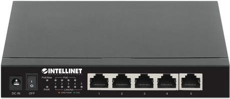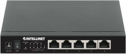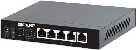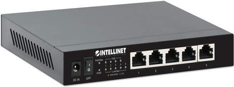 INTELLINET 5-Port 2,5G Ethernet PoE+ Switch Vier PSE PoE+ Ports, 10/100/1000/2500 Mbit/s auf allen Ports, 55 W PoE-Leistungsbudget, Unmanaged, Desktop-Format, optionale Wandmontage (561921)