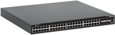 Der IC Intracom Intellinet-Switch bietet Leistung mit 48 10/100/1000 (PoE+)-Ports und 6 10-Gigabit-SFP+-Uplink-Ports, die für verschiedene Netzwerkanforderungen geeignet sind. Mit einer maximalen Kapazität von 1000 IPv4-Routing-Einträgen und 24000 IPv6-Routing-Einträgen ist dieser Switch für anspruchsvolle Netzwerkumgebungen ausgelegt. Er unterstützt eine Reihe von Fernverwaltungsprotokollen, darunter SNMP, Telnet und HTTP, und gewährleistet so eine einfache Verwaltung und Überwachung. Die Quality-of-Service-Funktionen und VLAN-Tagging-Fähigkeiten verbessern die Priorisierung des Datenverkehrs und ermöglichen einen effizienten Netzwerkbetrieb. Der Switch ist in einem robusten Metallgehäuse untergebracht und mit einem Rack-Montagesatz ausgestattet. Er arbeitet effizient in einem Temperaturbereich von 0 °C bis 40 °C und einem Feuchtigkeitsbereich von 5 % bis 95 %. Das Gerät entspricht mehreren Standards, darunter FCC, RoHS und NDAA, und gewährleistet so Zuverlässigkeit und die Einhaltung gesetzlicher Vorschriften. Mit einem PoE-Budget von 850 W und Unterstützung für eine Vielzahl von Netzwerkfunktionen wie IGMP-Snooping, QoS und Class of Service ist dieser Switch eine Lösung für moderne Netzwerkaufgaben.
